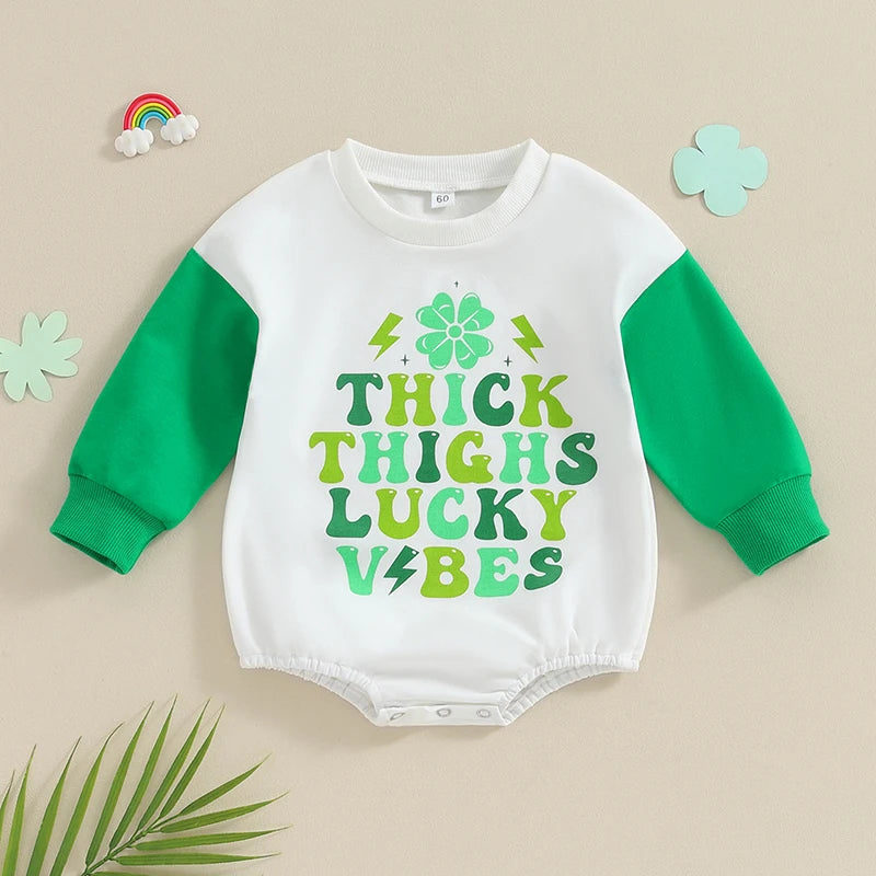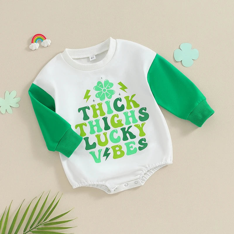 Baby St. Patrick's Day Romper - Long Sleeve Crew Neck Shamrock Letter Print Playsuit