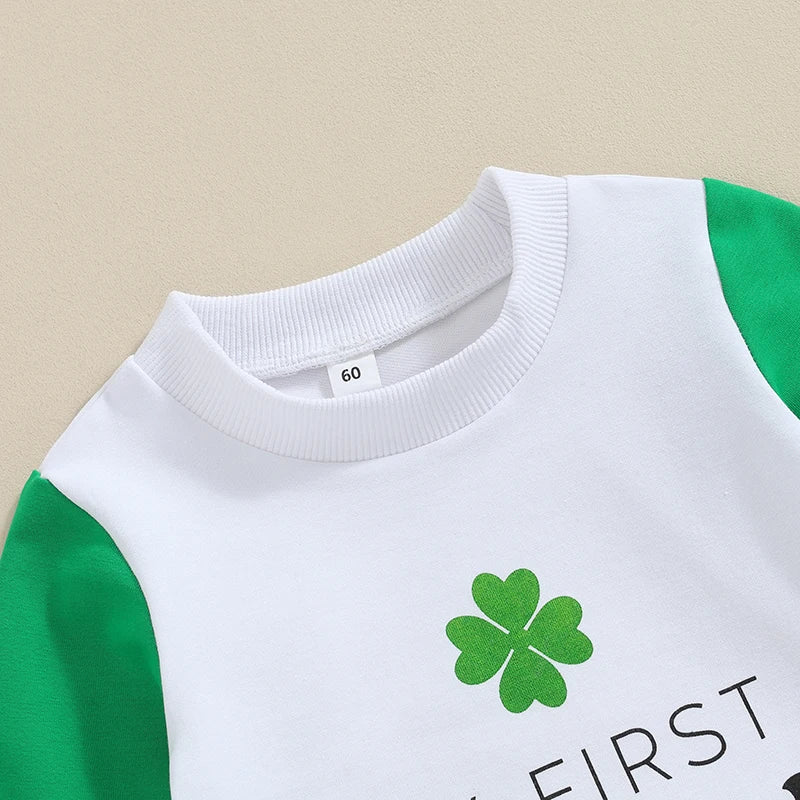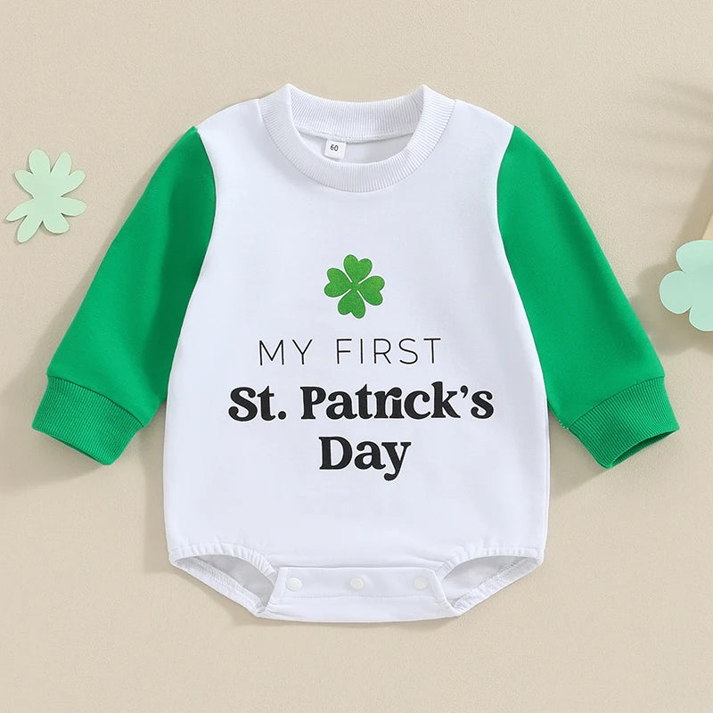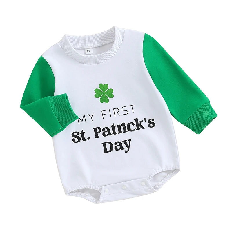 Baby St. Patrick's Day Romper - Long Sleeve Letter Print Shamrock Print O-Neck Jumpsuit (0-12 Months)
