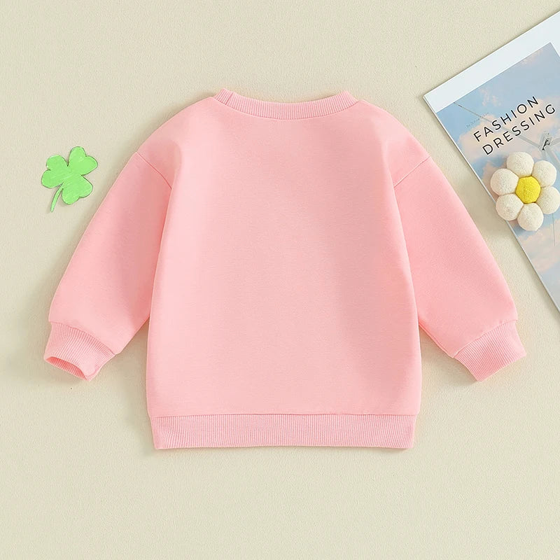 Dress your little girl in adorable style with our Toddler Baby Girl Sweatshirt. This charming pullover top features long sleeves, a crew neck, and a delightful letter clover print, perfect for embracing the spirit of Irish festivals.