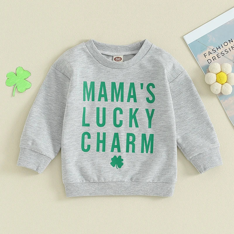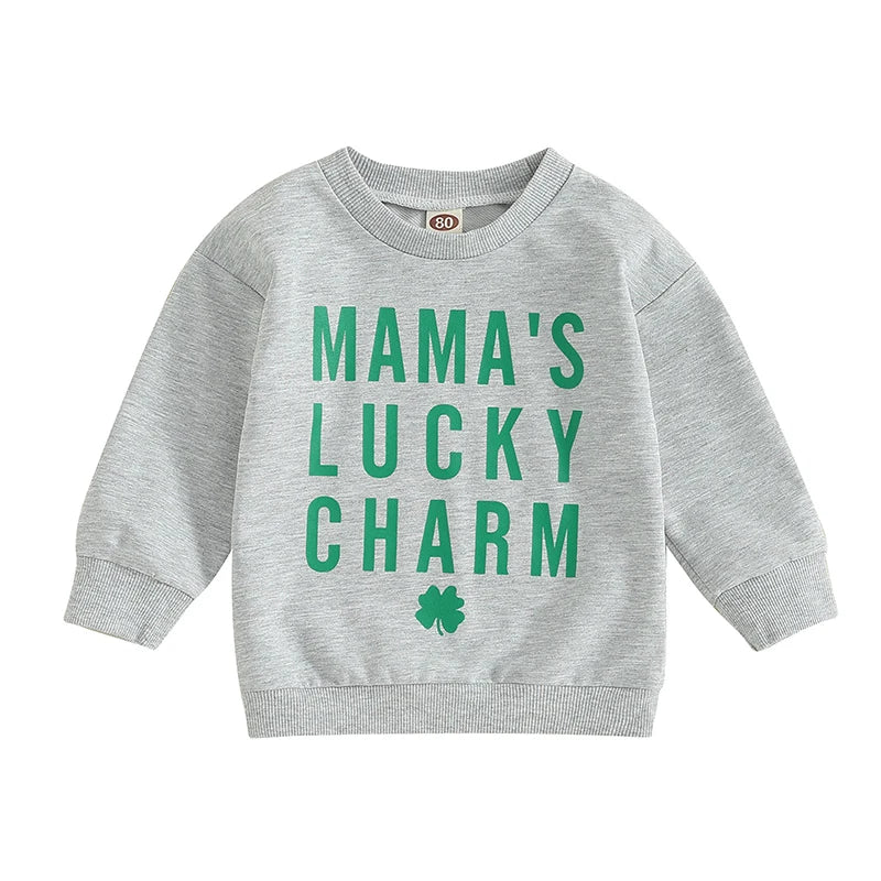 Baby Sweatshirt - Long Sleeve Crew Neck Letter Clover Print Infant Irish Festivals Pullover Tops
