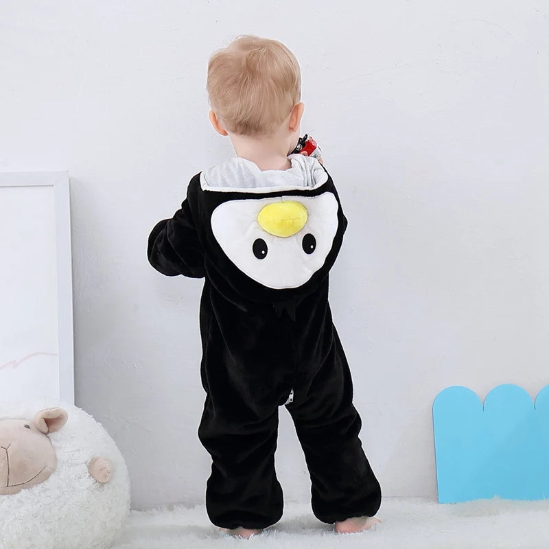 Baby Winter Hoodie Flannel Rompers - Cartoon Animals Bodysuit