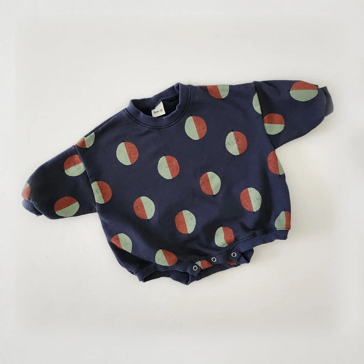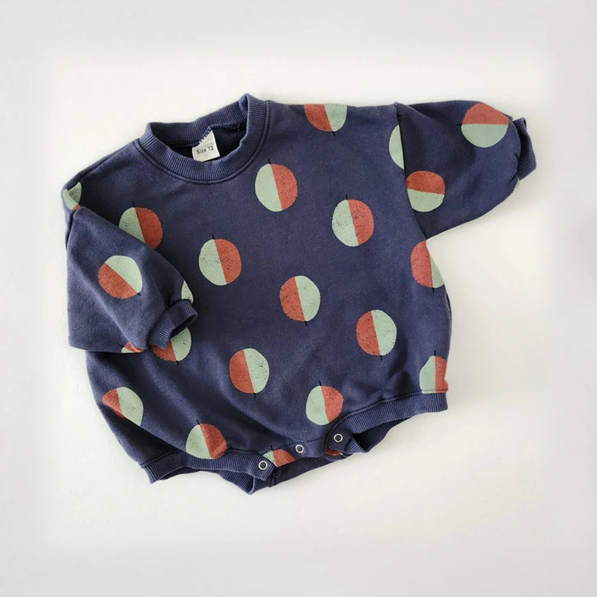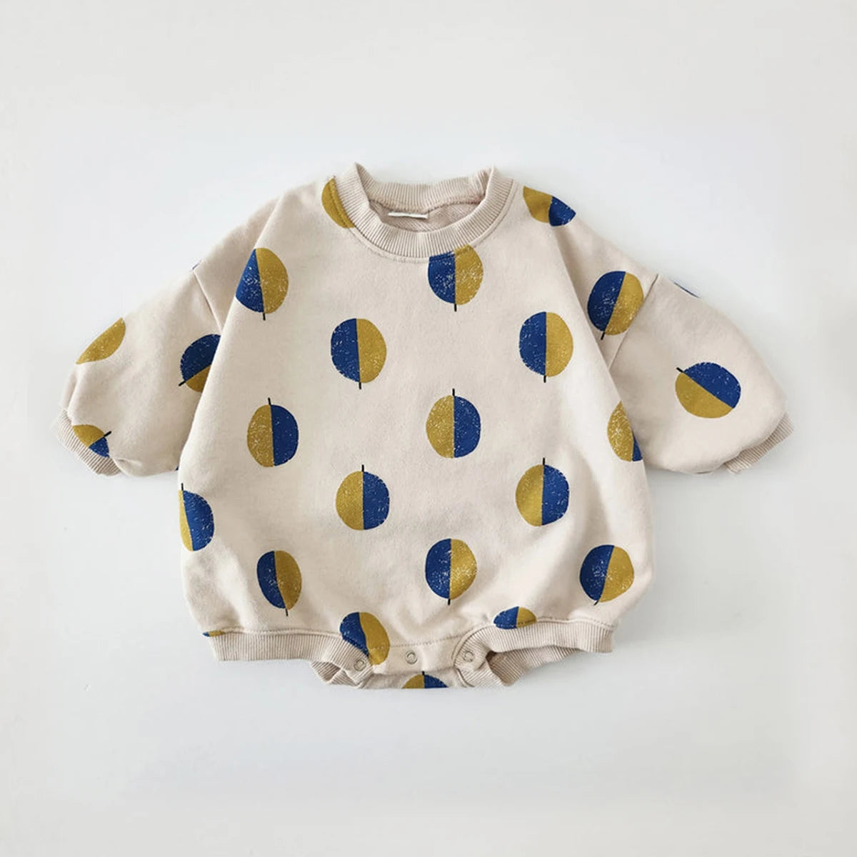 Balloon Print Sweatshirt Romper - Loose Fit Long Sleeve Jumpsuit for Newborn