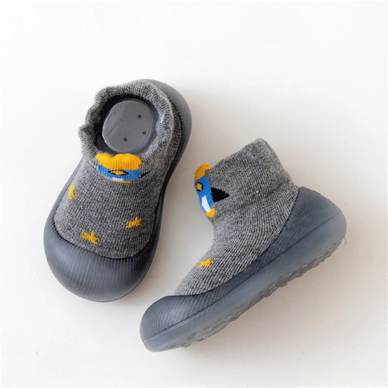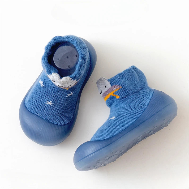 Designed for breathability, these shoes feature a lightweight and airy construction ideal for spring and autumn weather. The integrated socks provide additional comfort and prevent slippage, making them suitable for both indoor playtime and outdoor strolls.