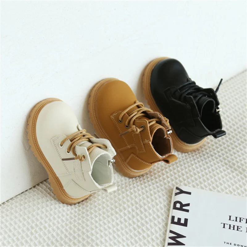 Introduce a touch of British elegance to your little one's wardrobe with our Spring/Autumn Baby Boots. Crafted from high-quality leather and featuring a stylish zip side design, these boots offer both fashion and functionality.