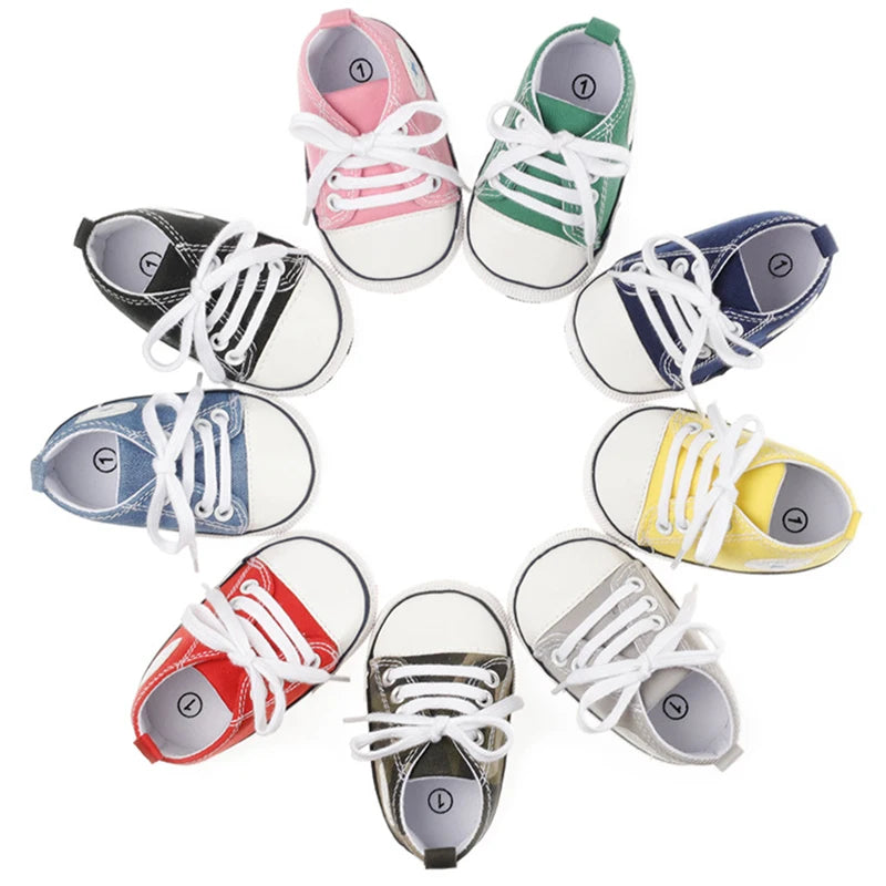 Ensure your baby's comfort and confidence with our Canvas Baby Sports Sneakers, the ideal choice for newborn first walkers.