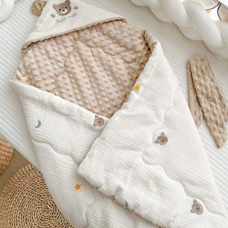 Keep your little one warm and cozy during chilly autumn and winter months with our Cartoon Bear Baby Swaddle Blanket. This thickened and warm blanket is designed to provide superior warmth and comfort for your baby.