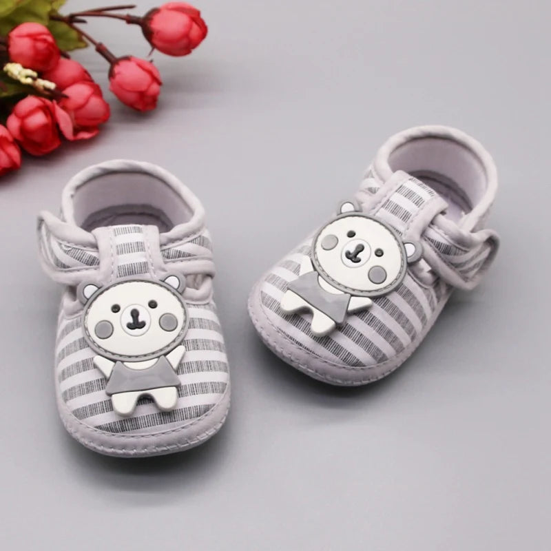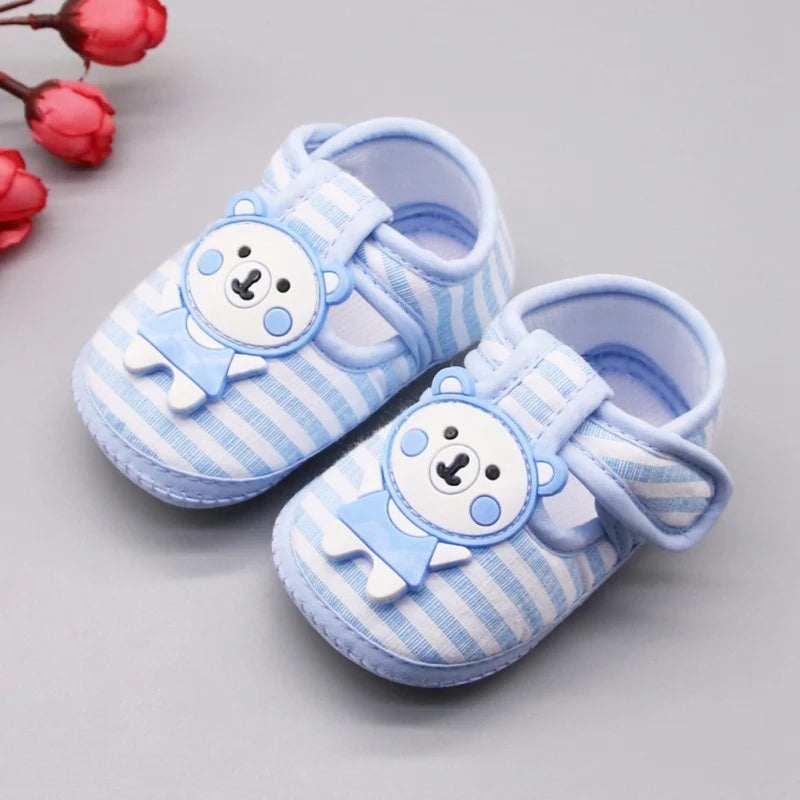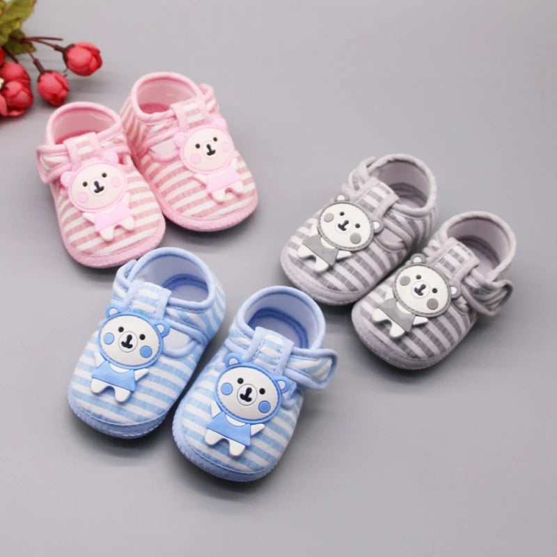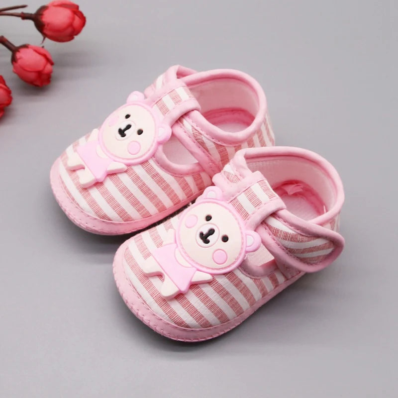 Cartoon Bear First Walkers Casual Cotton Shoes - Toddler Striped Soft Sole Shoes