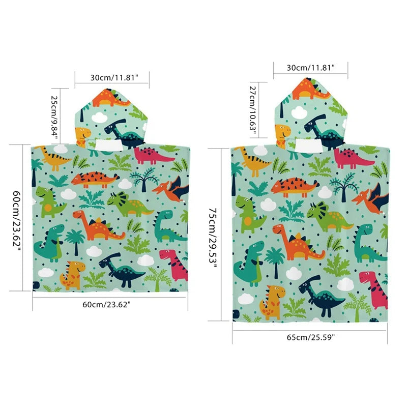 The hooded design adds an extra layer of fun, while the dinosaur motif sparks your child's imagination. Whether at the beach or at home, this versatile cloak is perfect for wrapping your child in cozy comfort.