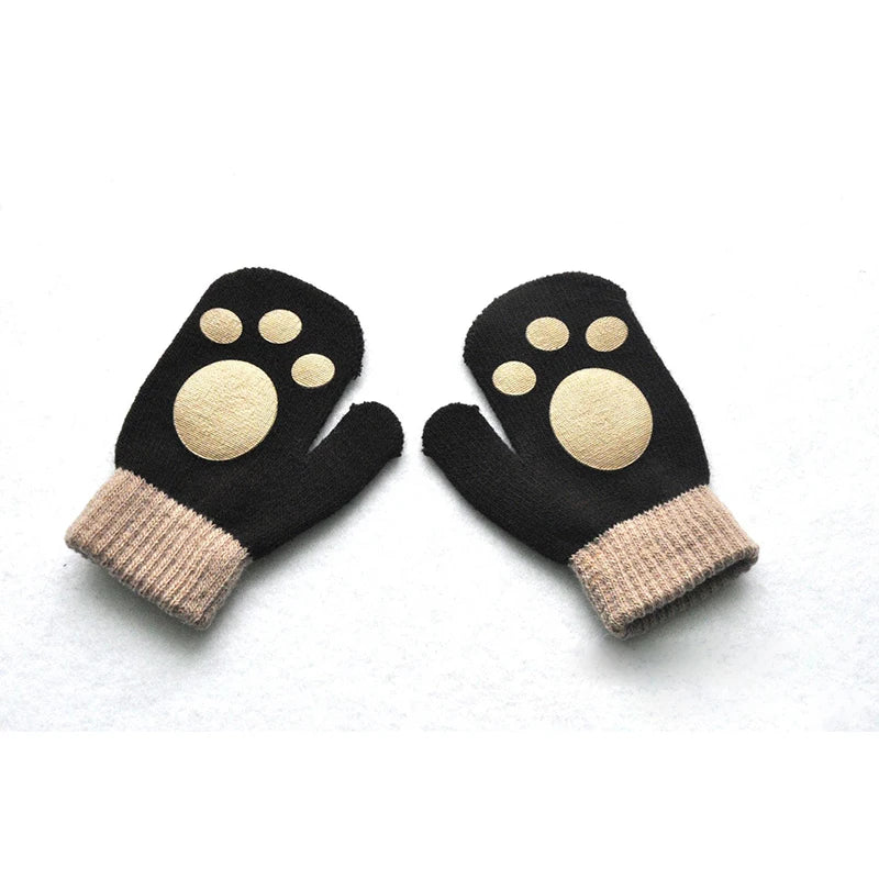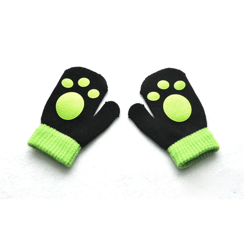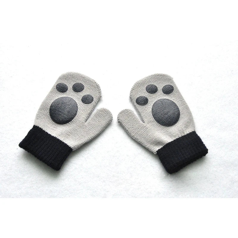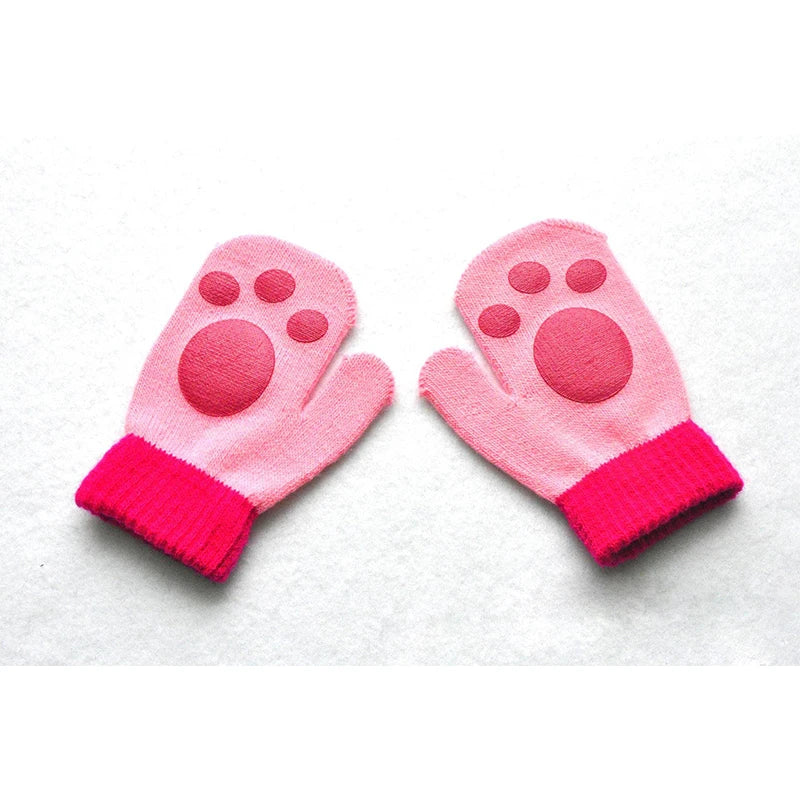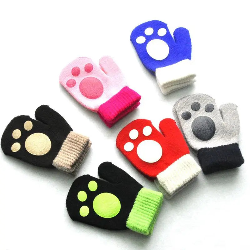 Cartoon Paw Print Knitted Baby Gloves - Warm Toddler Mittens for Autumn and Winter