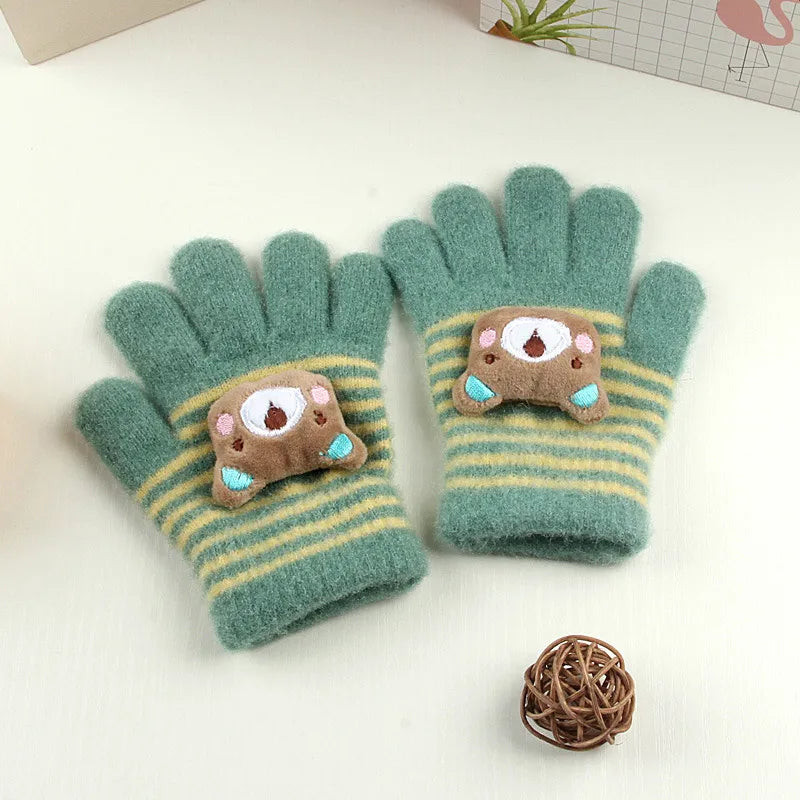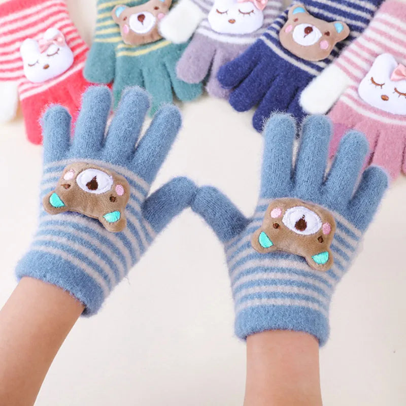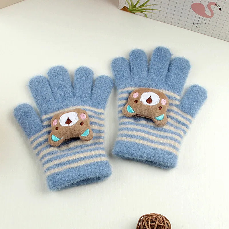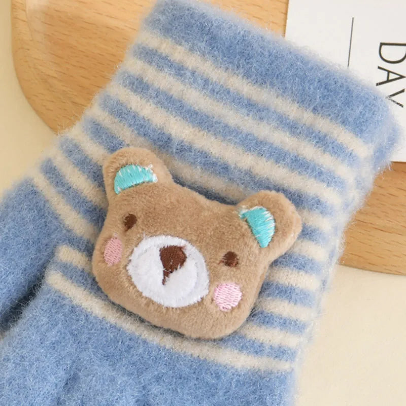 Cartoon Striped Cute Bear Baby Gloves - Winter Thicken Warm Full Finger Mittens for Boys and Girls