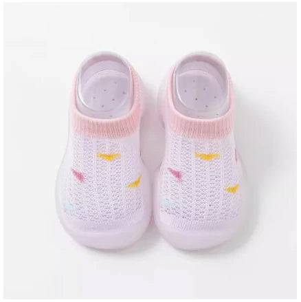 The walking shoes feature a soft sole and a breathable mesh surface, ensuring your child's feet stay cool and comfortable throughout the day. The non-slip design provides added stability, making them ideal for indoor use. Plus, the one-foot pedal design makes them easy for your child to put on and take off by themselves.