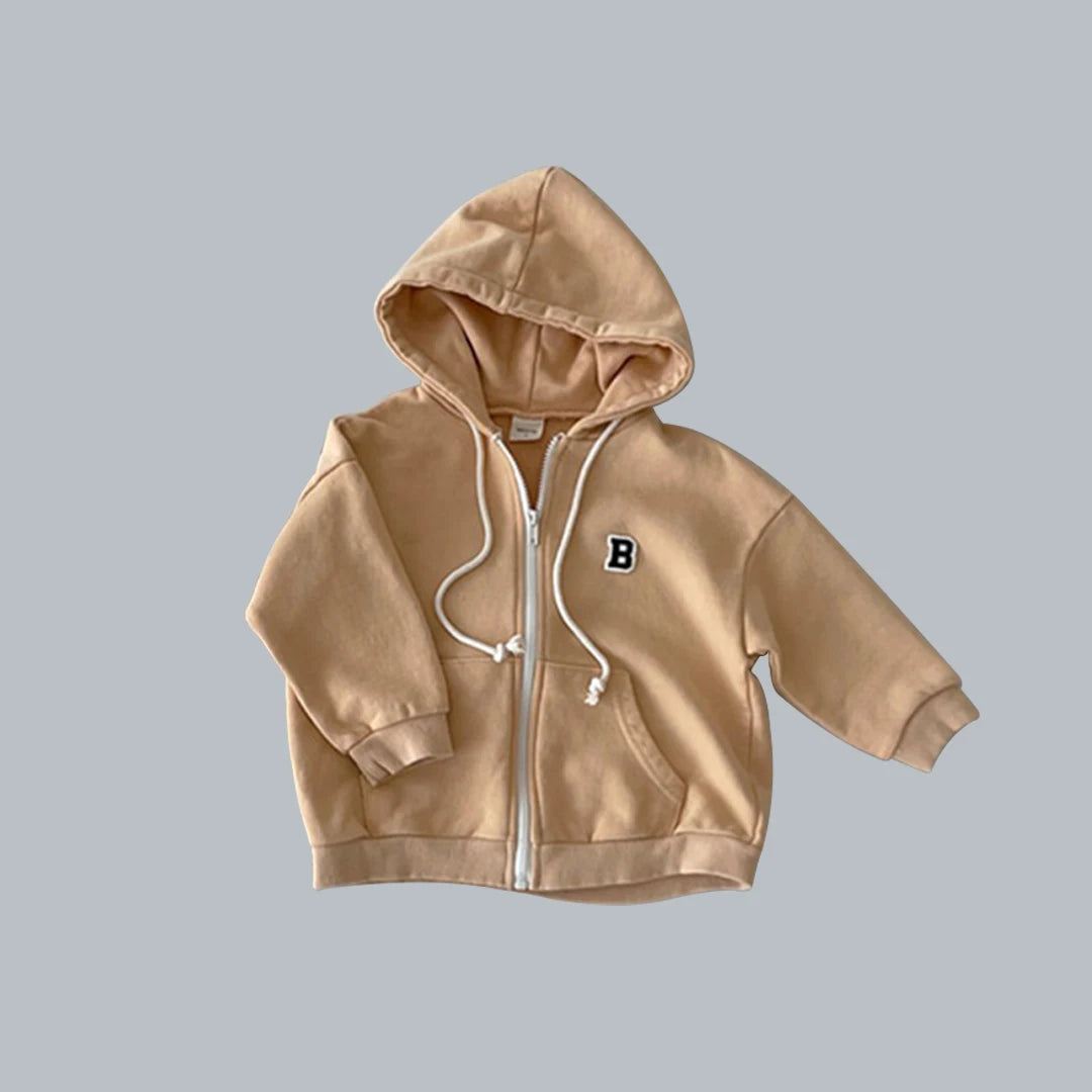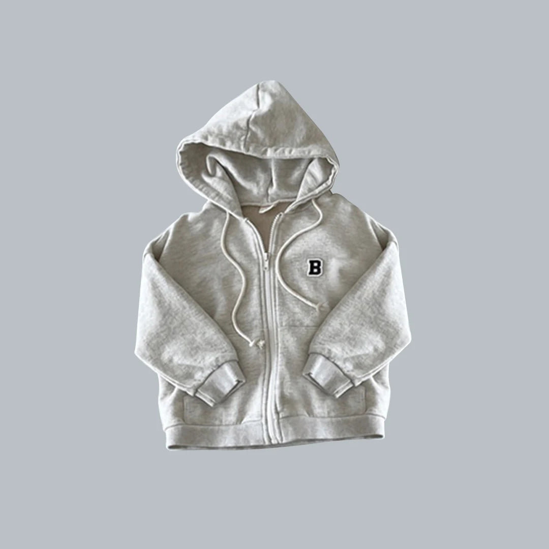 Featuring a convenient zipper closure and a comfortable hood, this sweater offers ease of wear and added warmth for your active kids. The stylish letter design adds a playful touch to their look, making it a versatile piece for various occasions.