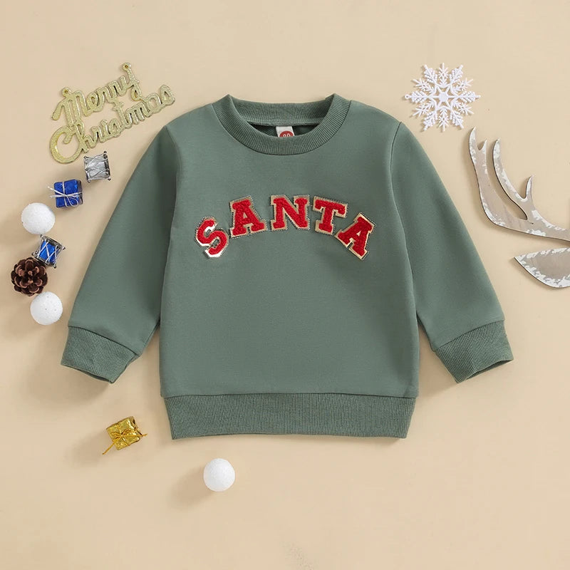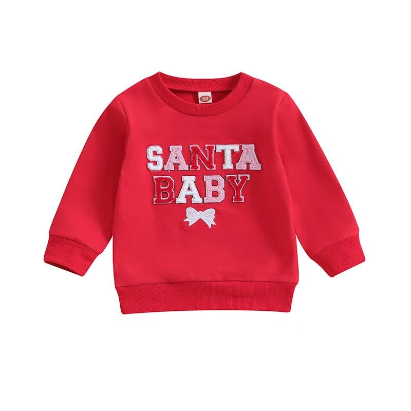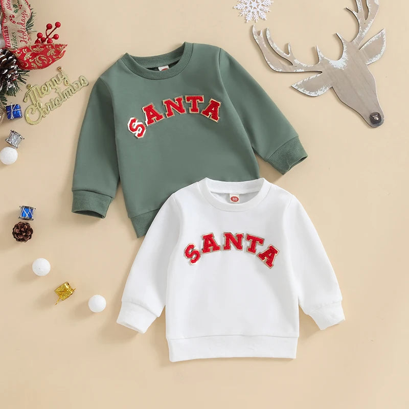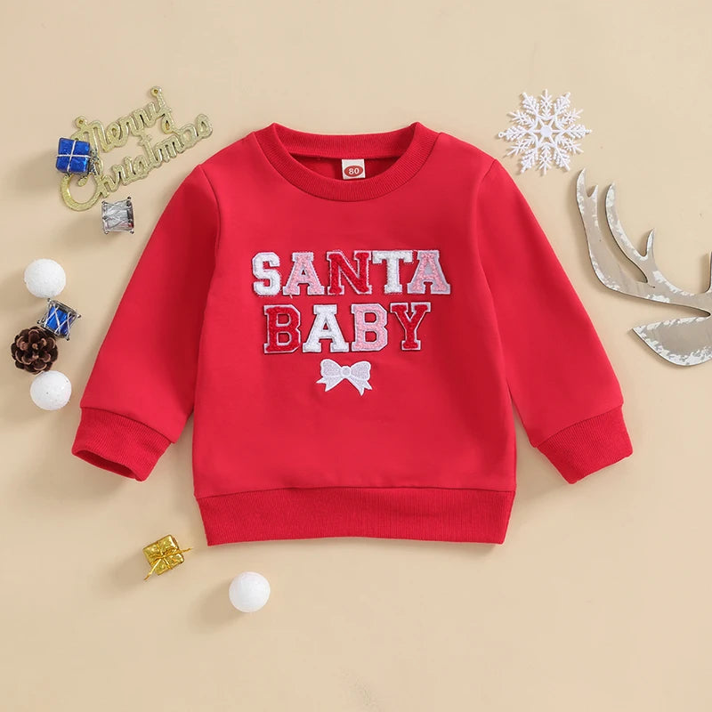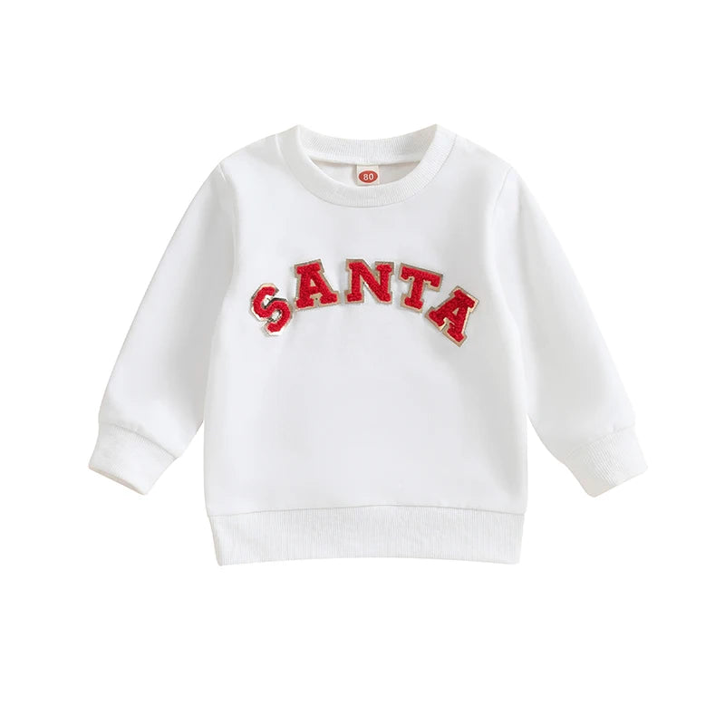Christmas Fuzzy Letter Long Sleeve Pullovers Tops for Casual Newborn Baby Boys Girls (0-3 Years)