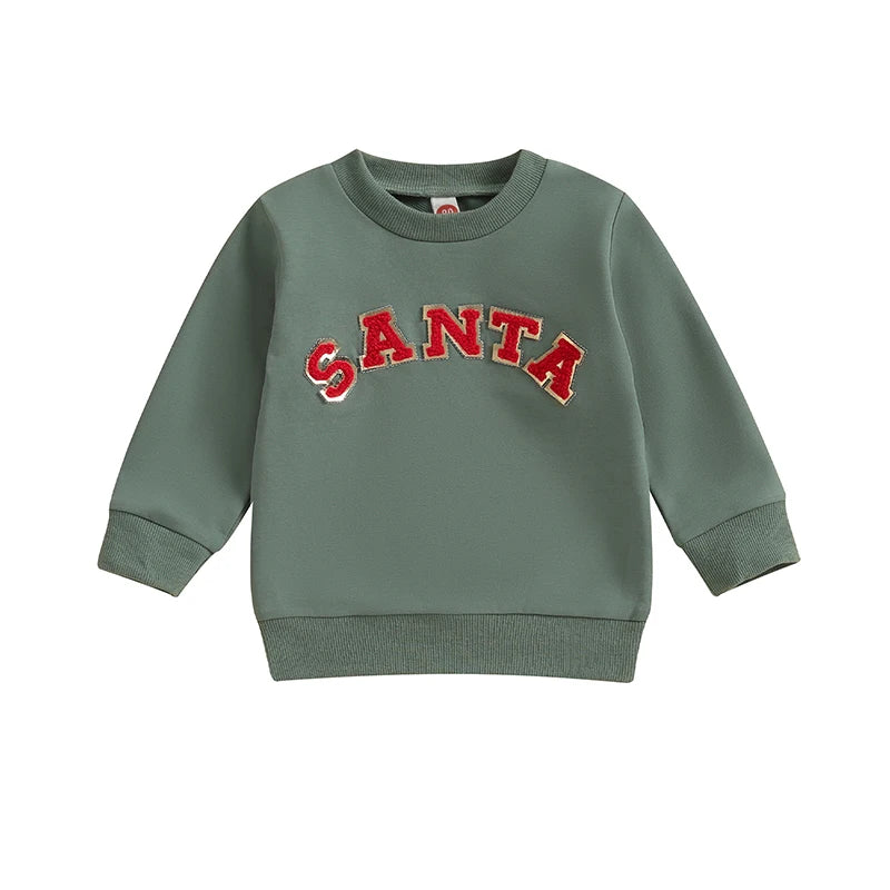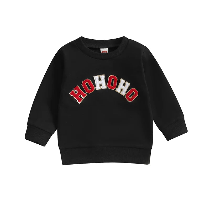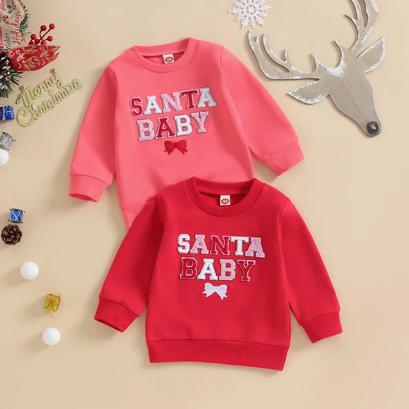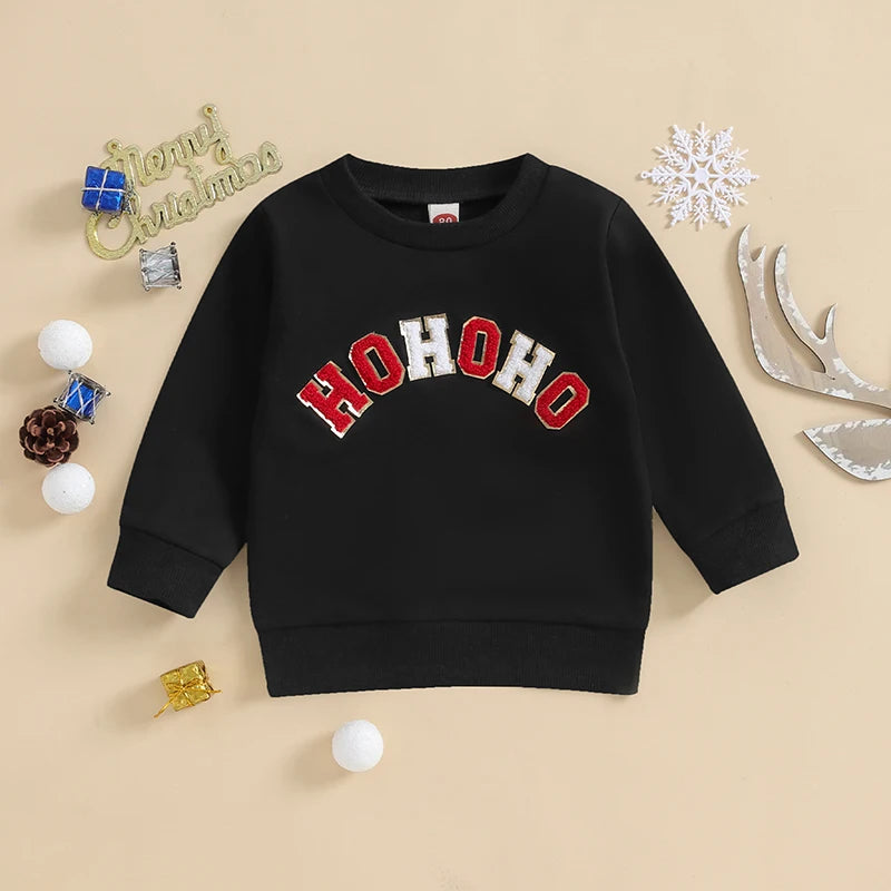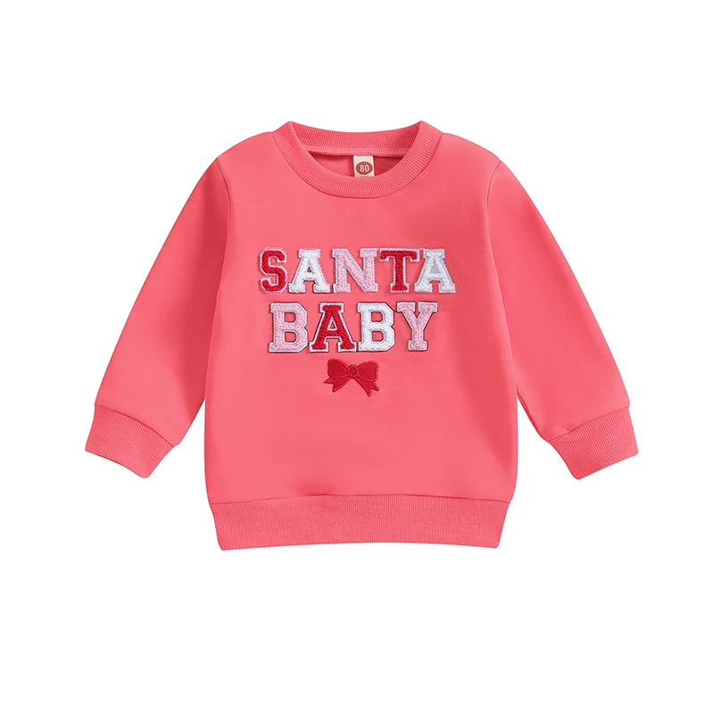 Christmas Fuzzy Letter Long Sleeve Pullovers Tops for Casual Newborn Baby Boys Girls (0-3 Years)