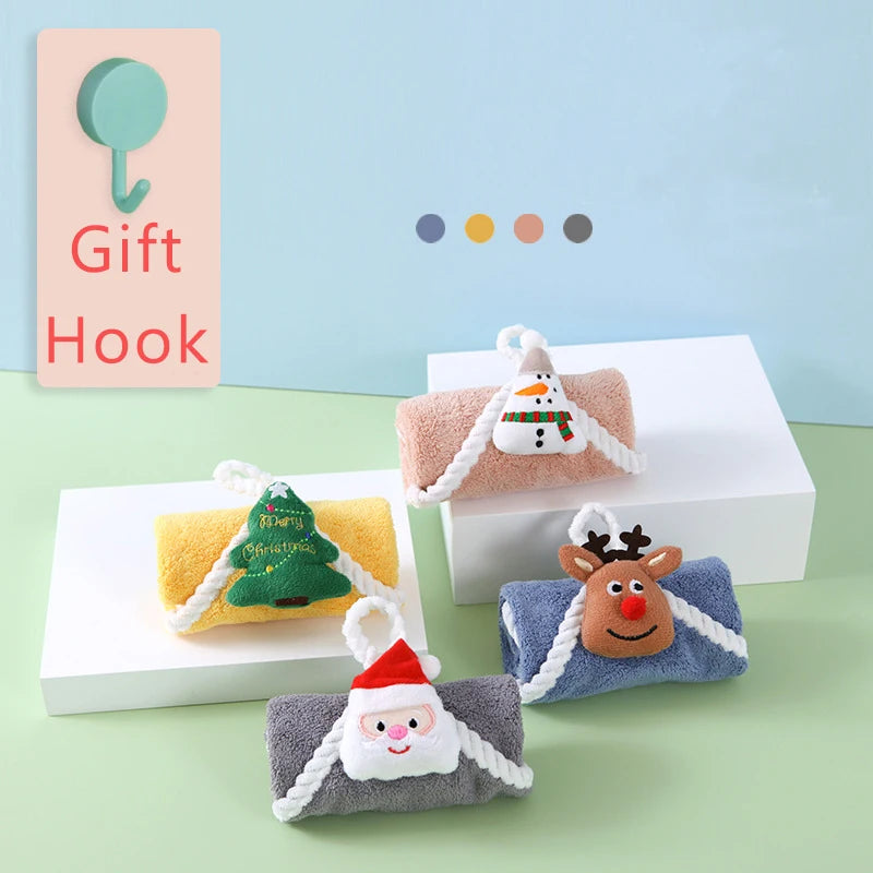 Christmas Hangable Coral Towel 30x30cm - Super Absorbent, Cute Cartoon Design