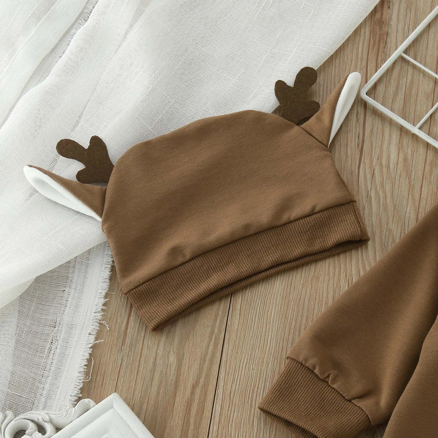 Dress your little one in festive charm with this Christmas Newborn Baby Jumpsuit Set. The set includes a cozy long sleeve deer romper adorned with holiday-inspired motifs, paired with a matching hat for added cuteness.