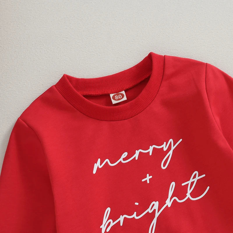 Dress your little princess in festive style with our Christmas Outfit featuring a Letter Print Long Sleeve Sweatshirt and Striped Bell Bottom Flares Pants Set. Perfect for baby girls aged 6 months to 4 years, this charming ensemble combines comfort and holiday cheer. Crafted from soft and cozy materials, it ensures your baby stays cute and comfortable during Christmas festivities.