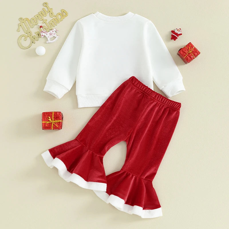 Christmas Outfits Long Sleeve Letter Print Sweatshirt + Velvet Flare Pants Set for Toddler Baby Girls