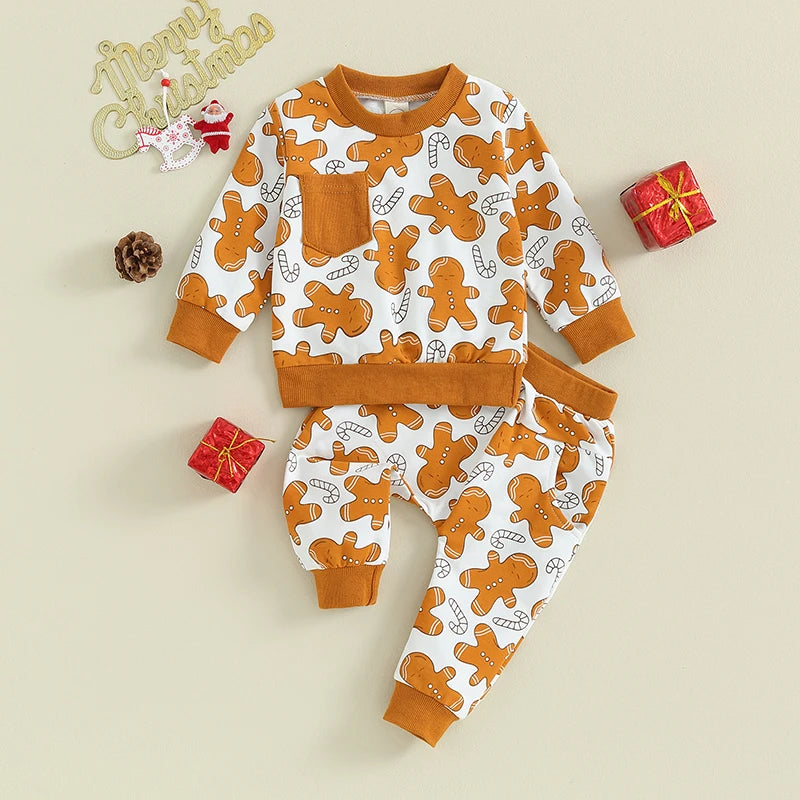 Featuring a long sleeve O-neck sweatshirt and matching pants, this set exudes casual holiday charm. Whether your toddler is playing indoors or enjoying outdoor activities, they'll stay comfortable and stylish in this outfit. The versatile design makes it perfect for attending family gatherings, holiday parties, or simply lounging at home.