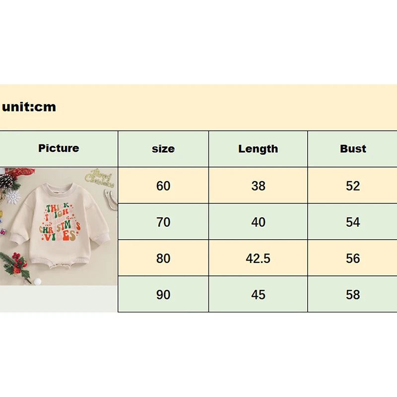 Dress your little ones in festive style with our Christmas Romper featuring Letter Print Long Sleeve Sweatshirt Jumpsuit Xmas Clothing. Perfect for newborn baby boys and girls aged 0 to 18 months, this adorable romper combines comfort and holiday charm. Crafted from soft and cozy materials, it ensures your baby stays cute and snug during Christmas celebrations.