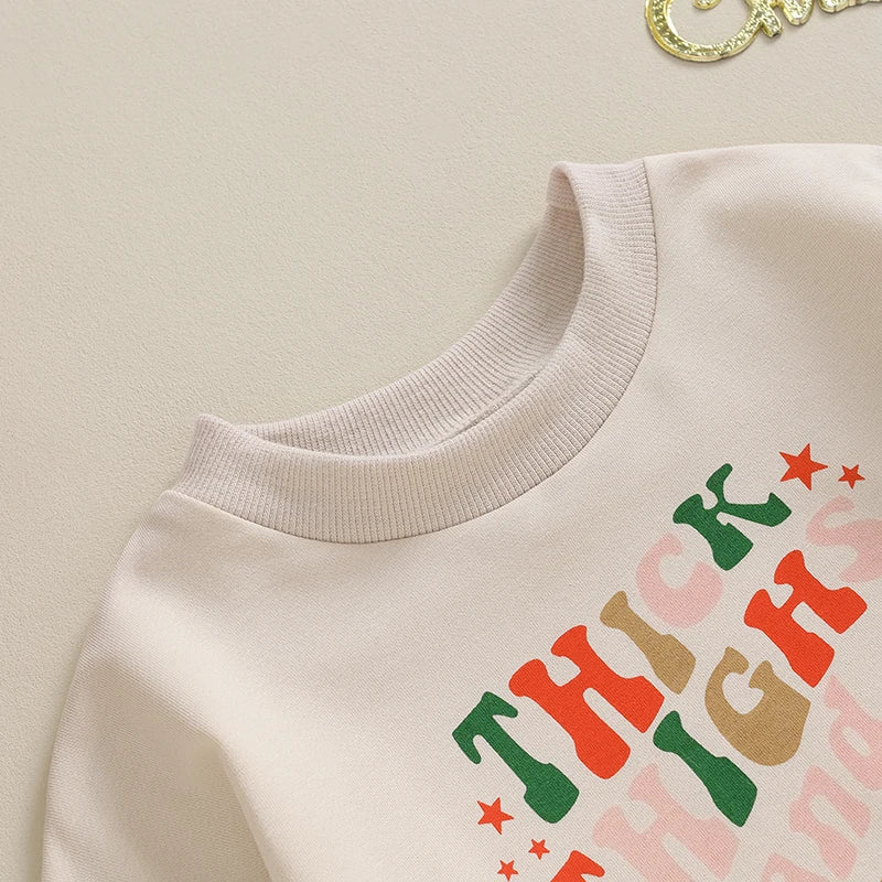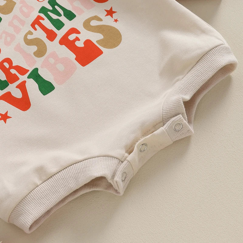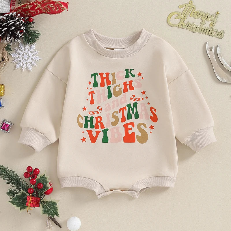 Christmas Romper Letter Print Long Sleeve Sweatshirt Jumpsuit Xmas Clothing (0-18 Months)