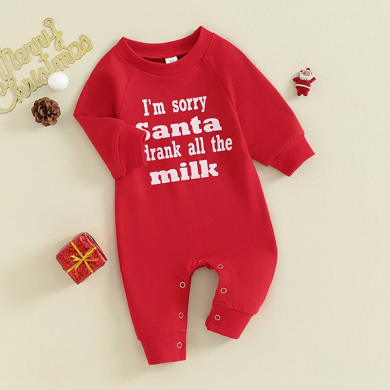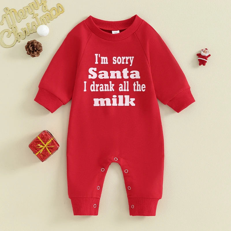 Christmas Romper Long Sleeve Crew Neck Letter Print Jumpsuit Playsuit (0-18 Months)