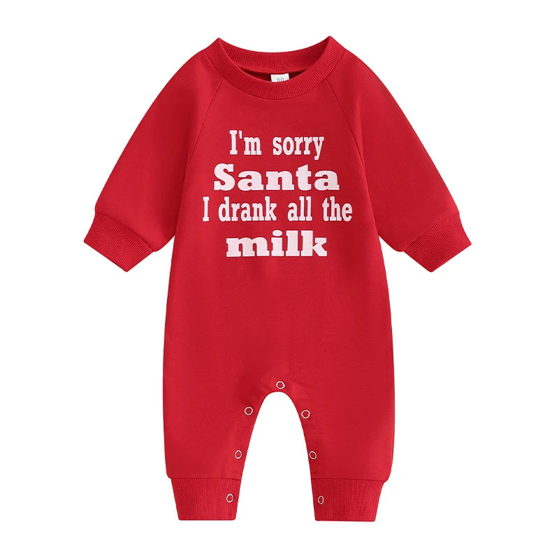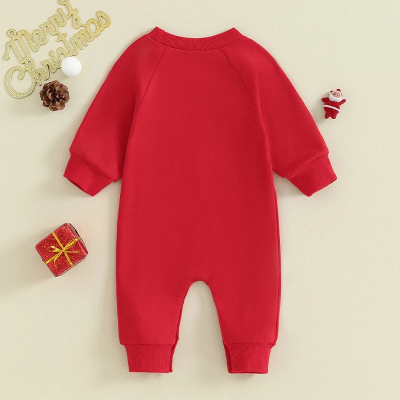 Featuring a classic crew neck design and charming letter print, this jumpsuit exudes holiday cheer with every wear. Whether your baby is playing at home or attending a holiday gathering, they'll look cute and stylish in this romper. The long sleeves offer extra coverage, while the snap closure ensures easy diaper changes for busy parents.
