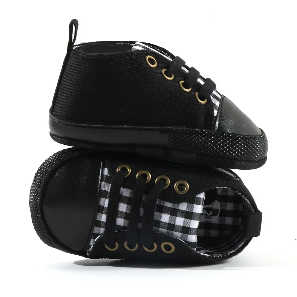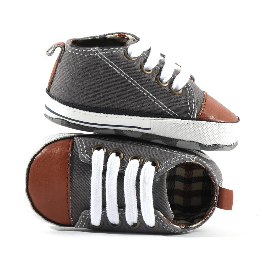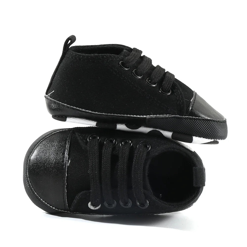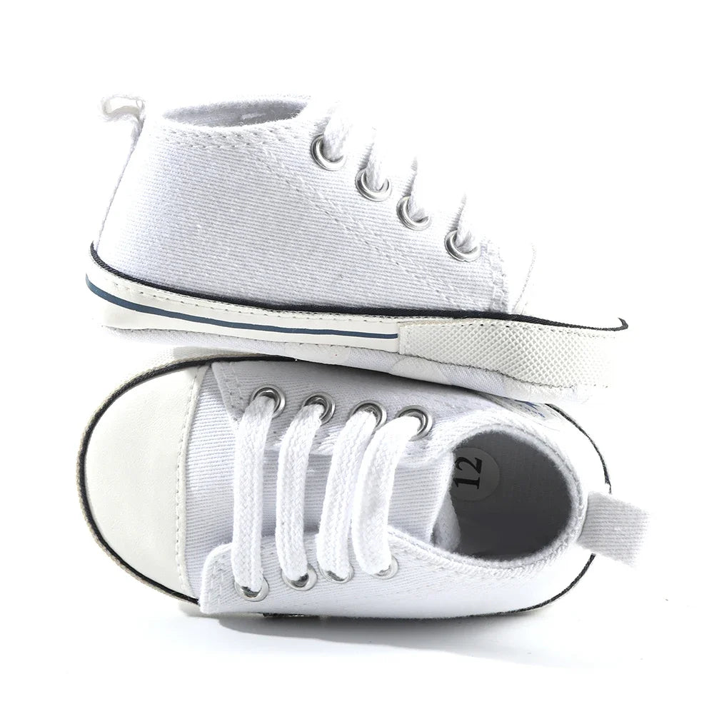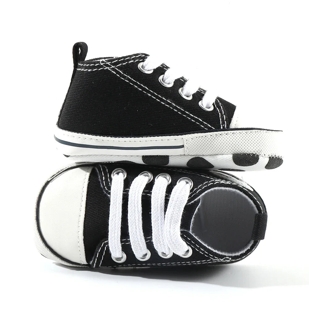 Introducing our Classic Sports Canvas Baby Sneakers, tailored for newborn boys and girls taking their first steps. These sneakers combine timeless style with modern functionality, making them the perfect choice for your little one's adventures.
