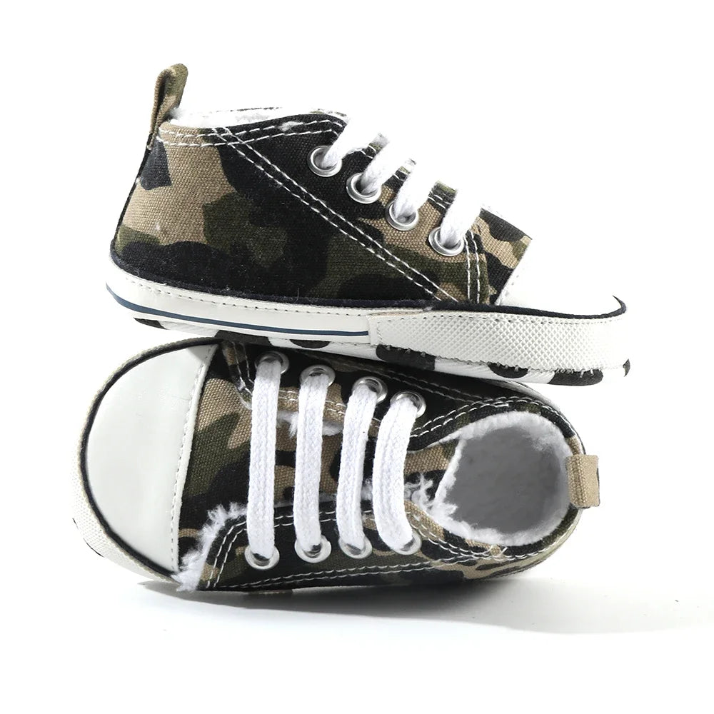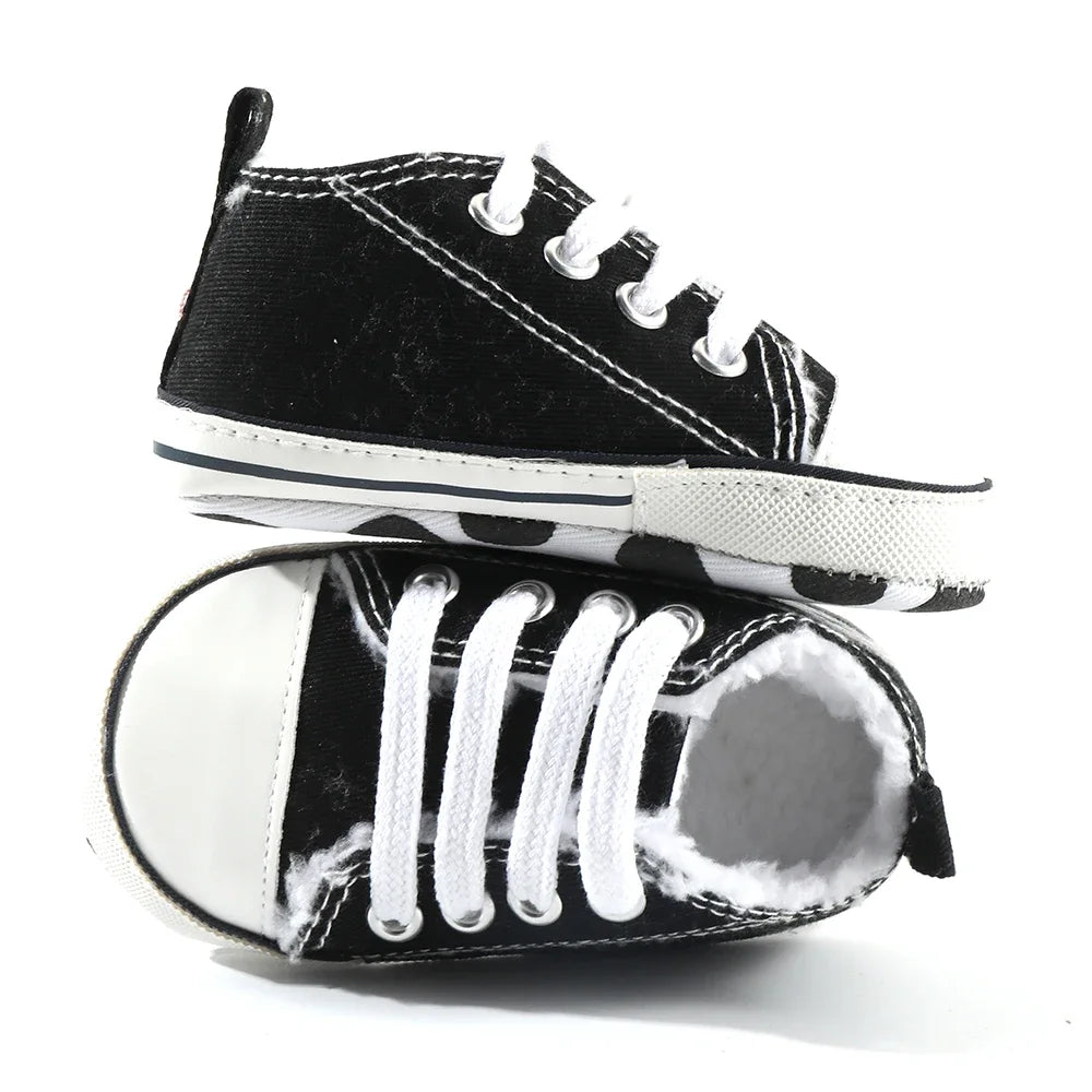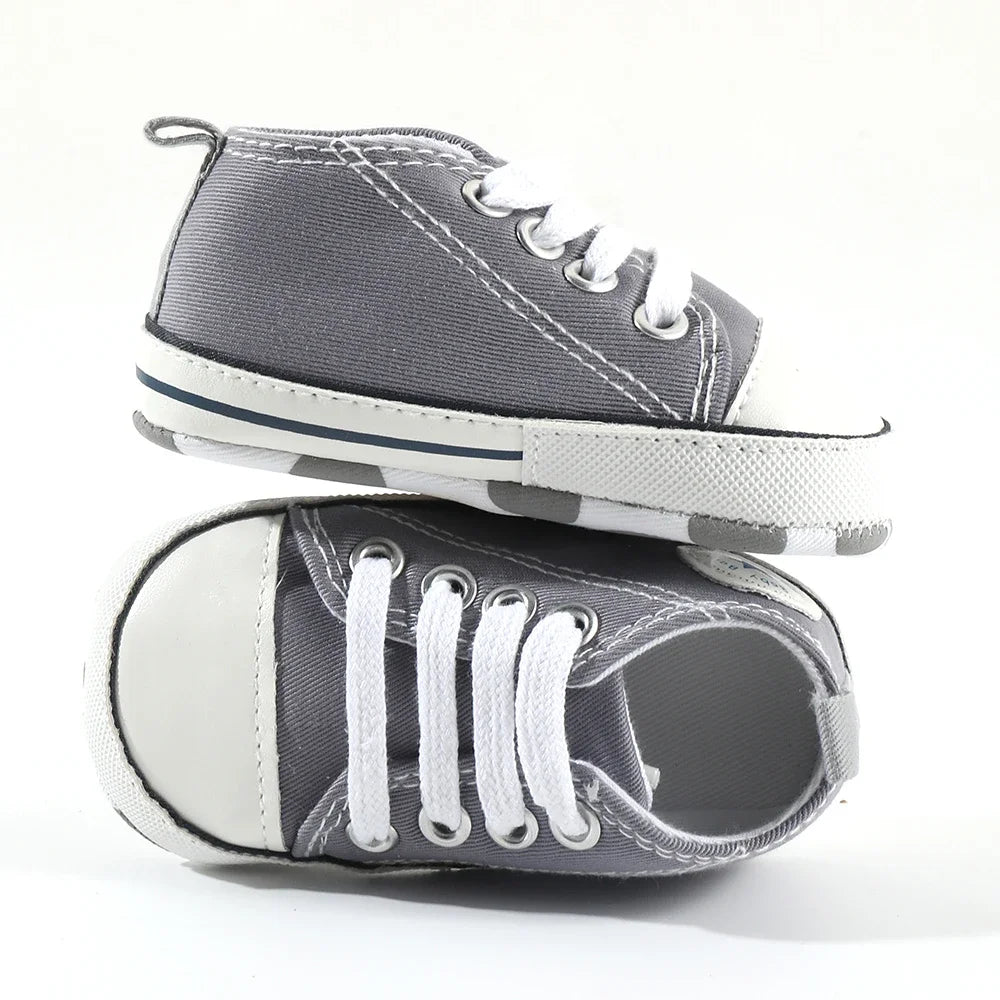 Crafted with a durable canvas material and featuring an anti-slip sole, these sneakers provide stability and support as your baby explores their surroundings. Whether it's playtime at home or a stroll in the park, these shoes offer comfort and security.