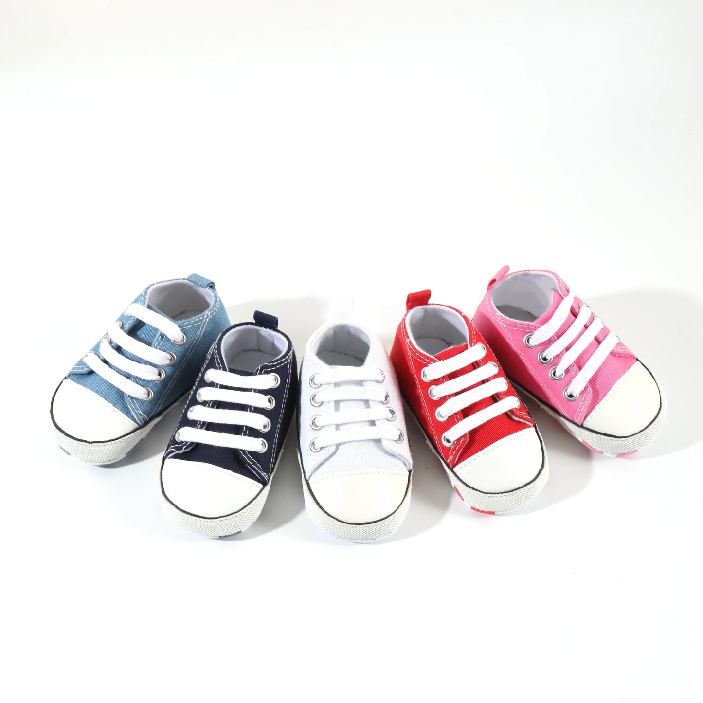 Ideal for everyday wear or as crib shoes, our Classic Sports Canvas Baby Sneakers are a versatile and practical option for your little explorer. Ensure their comfort and safety with these adorable and functional shoes.