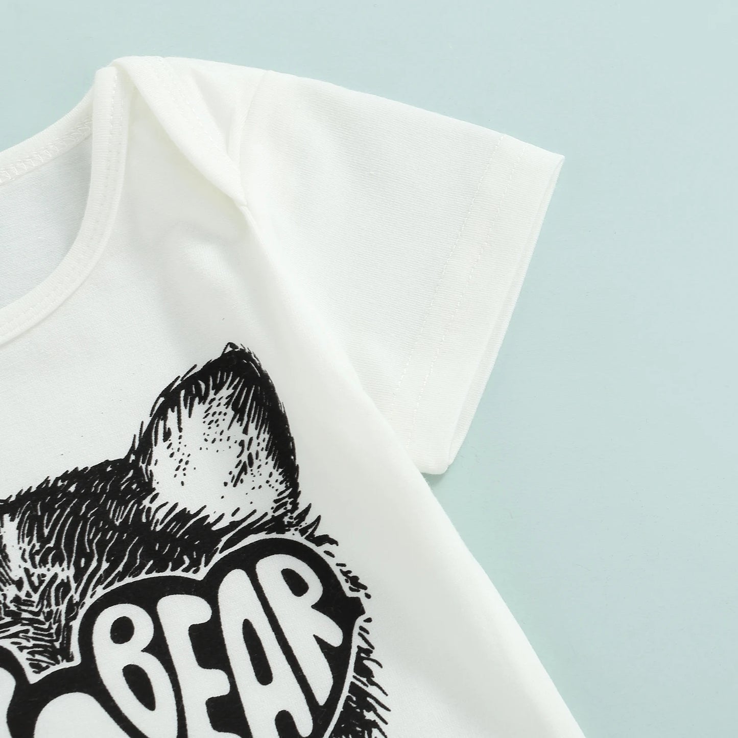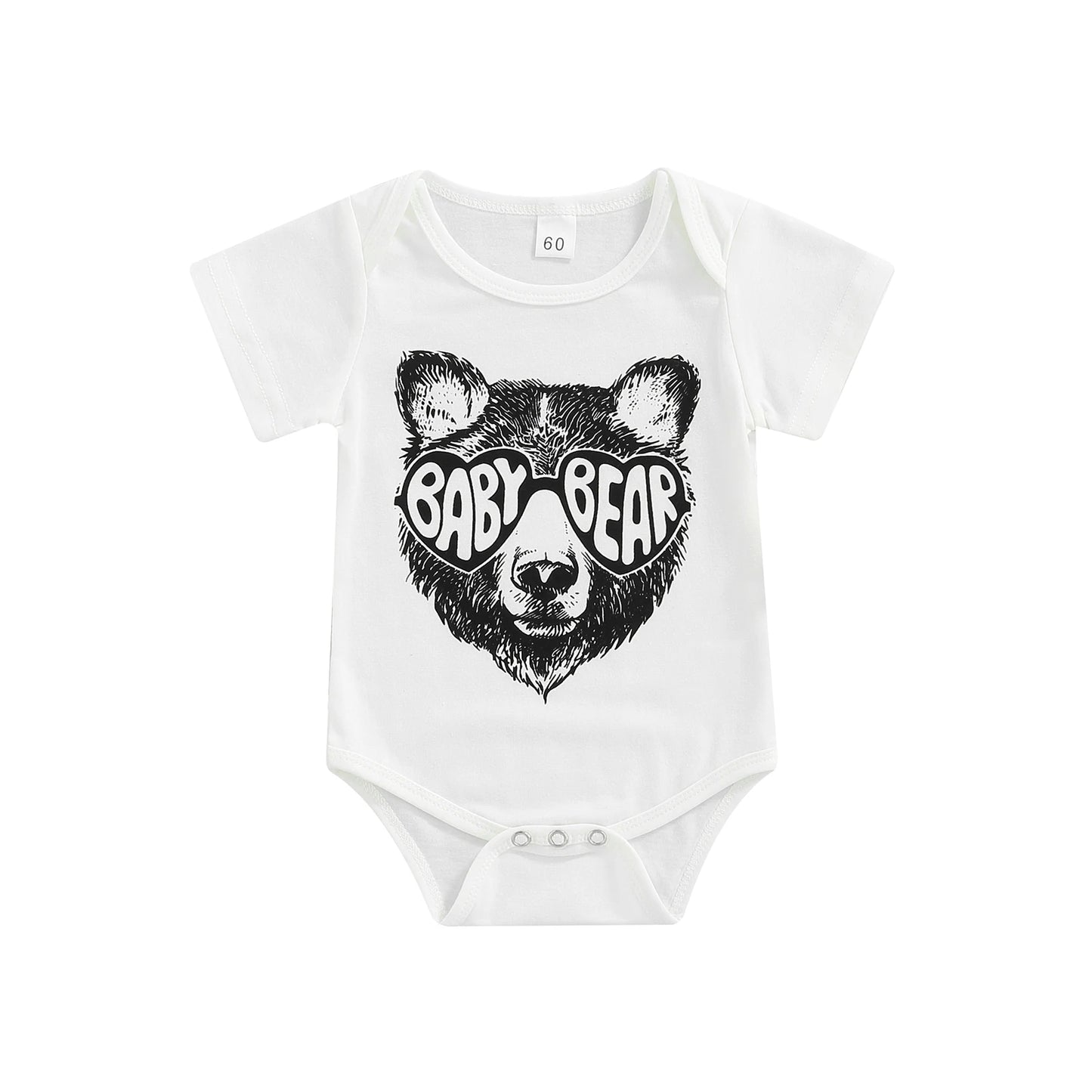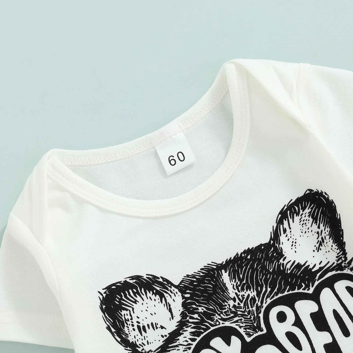 The short sleeves and O neck design provide a classic and comfortable fit, perfect for everyday wear. The playful letter and bear head prints add a touch of cuteness to your baby's outfit, making it suitable for various occasions.