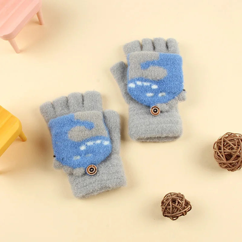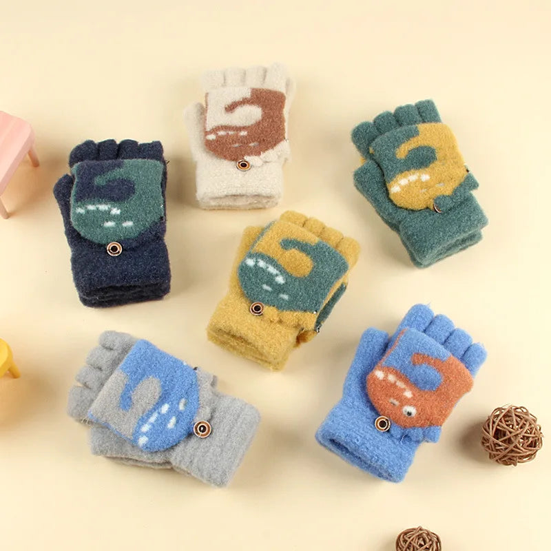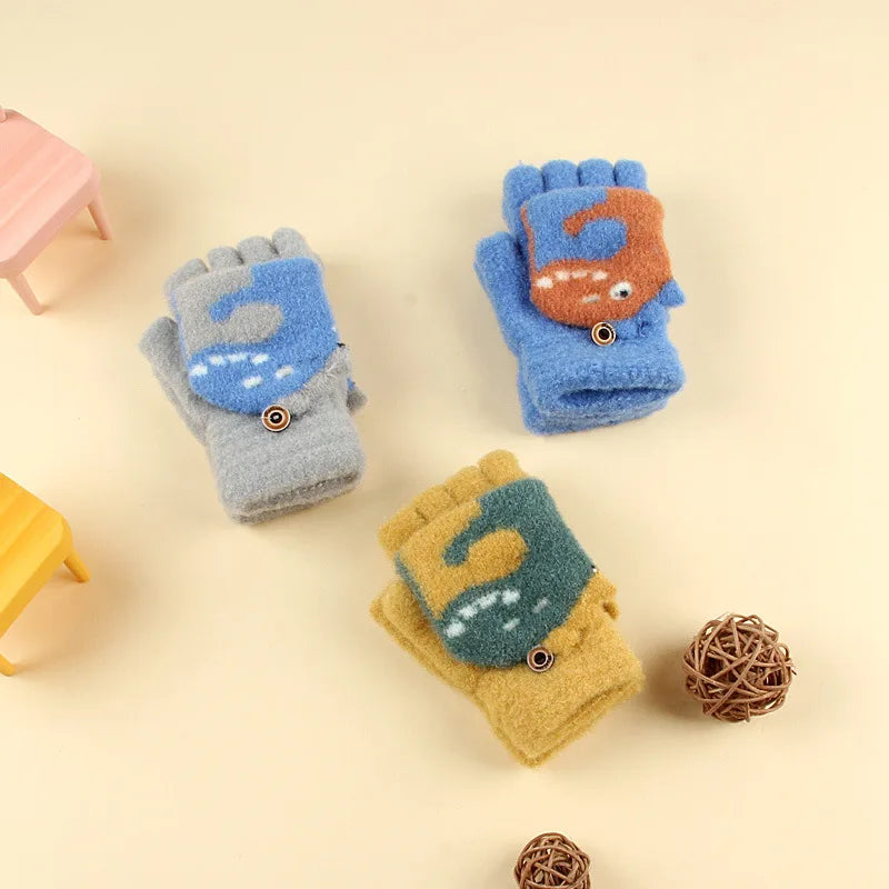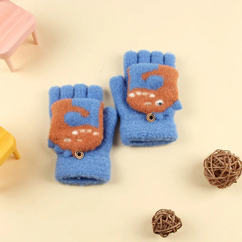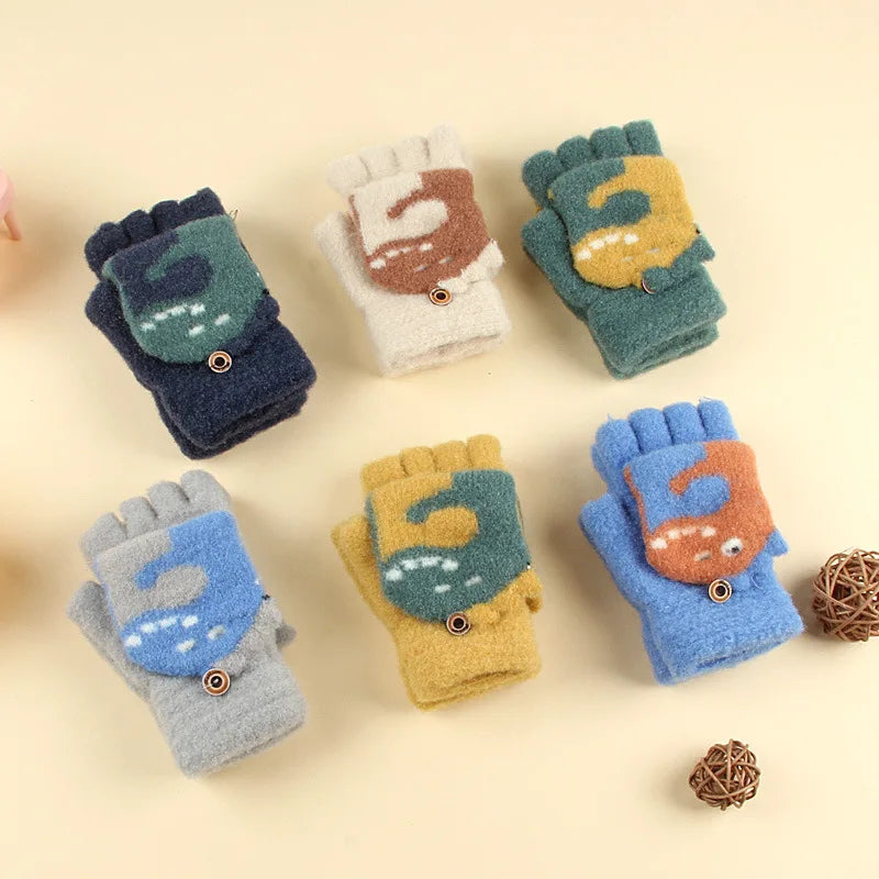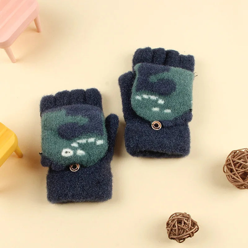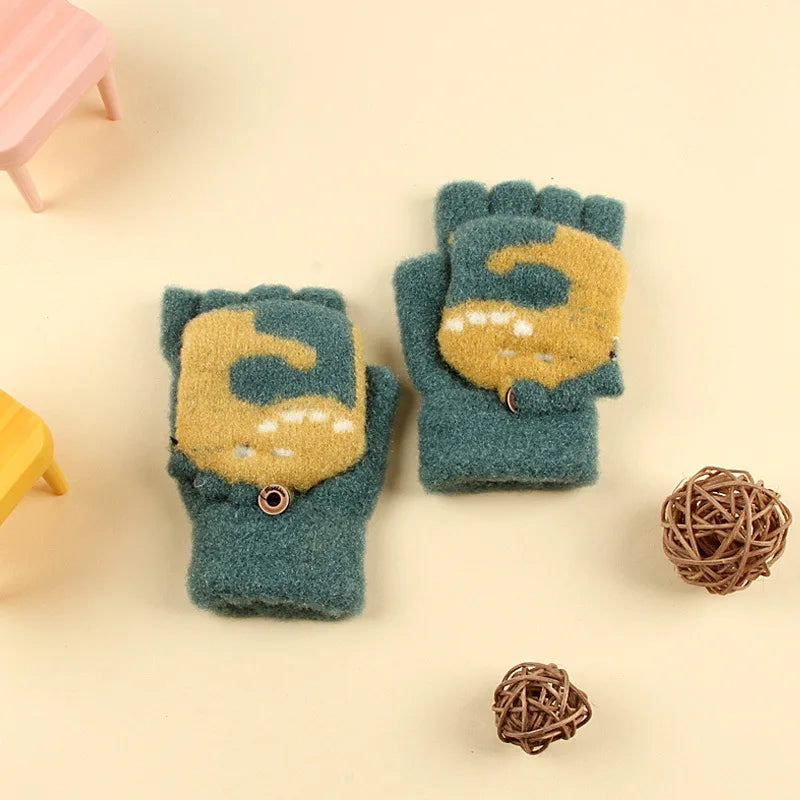 Keep your children warm and stylish during winter with our Cute Cartoon Dinosaur Flip Half Finger Gloves. These plush mittens feature adorable dinosaur designs and a flip half finger design, perfect for adding a playful touch to your child's winter attire. Crafted for warmth and comfort, these gloves are suitable for both boys and girls.