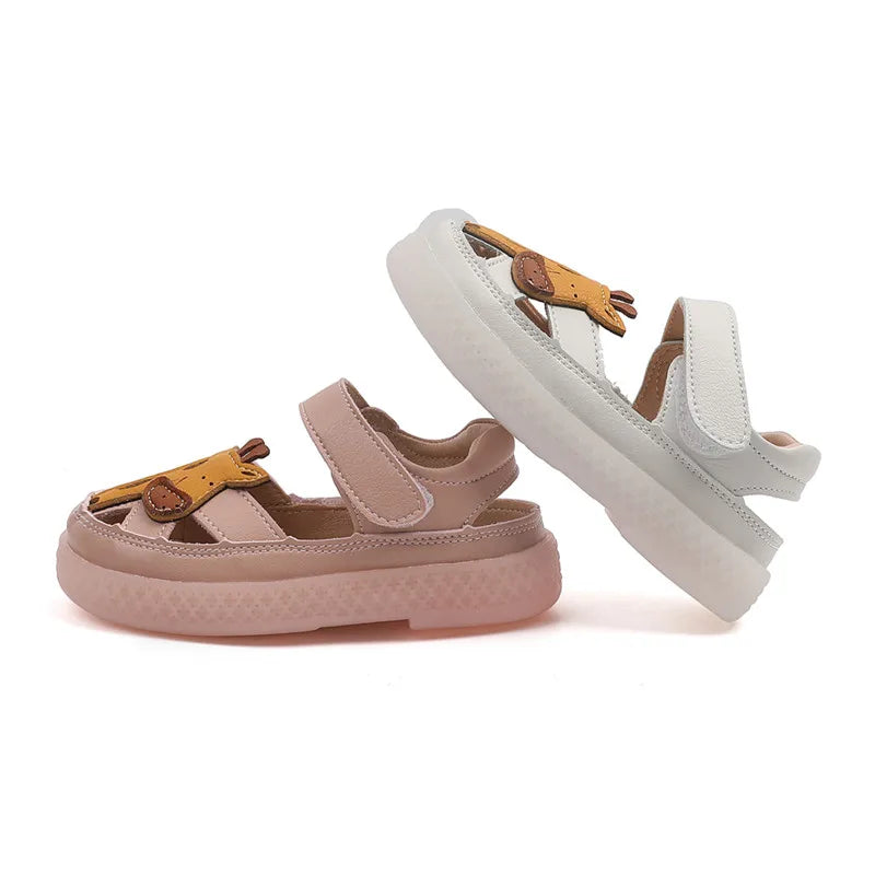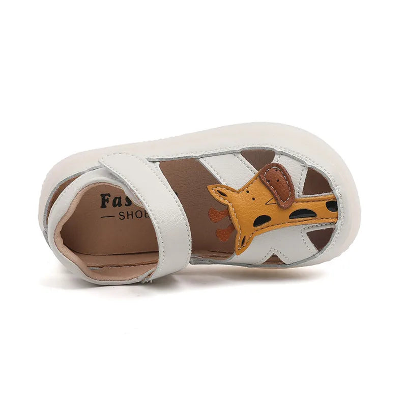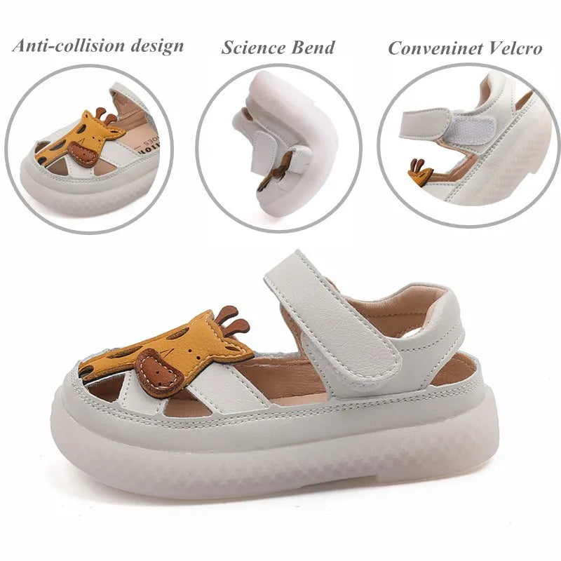 Crafted from high-quality leather, these sandals are both durable and comfortable. The closed-toe design offers added protection, while the anti-slippery sole ensures stability for new walkers. The charming giraffe pattern adds a fun and playful touch to any outfit.
