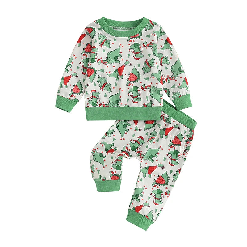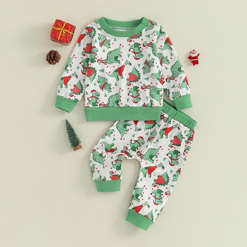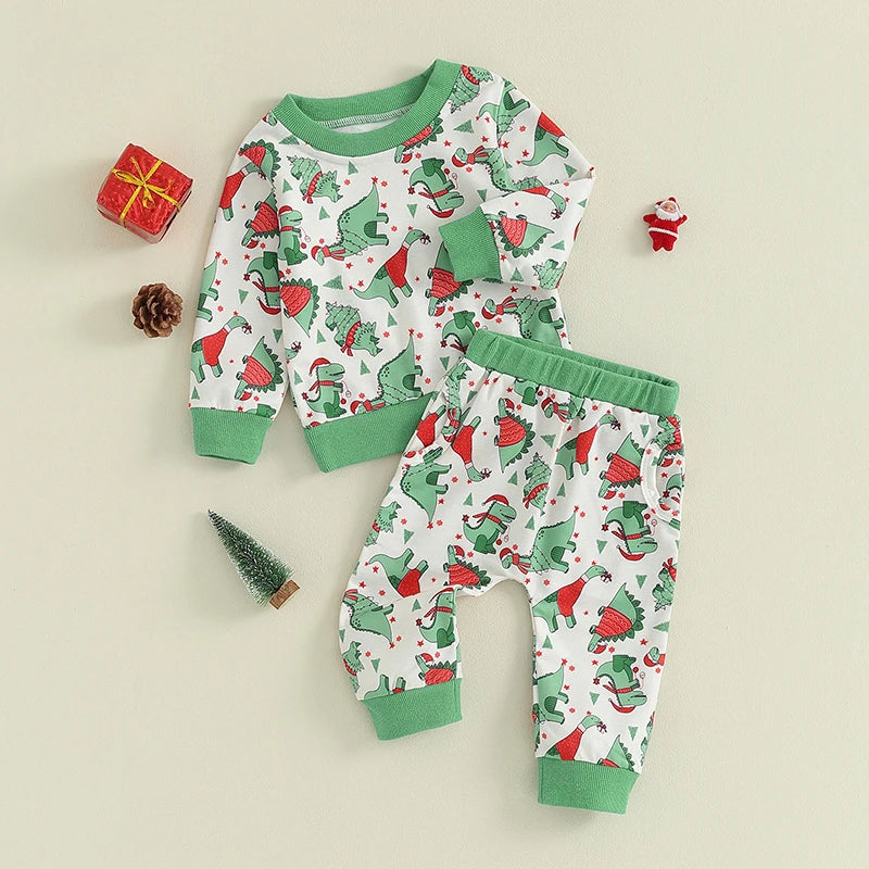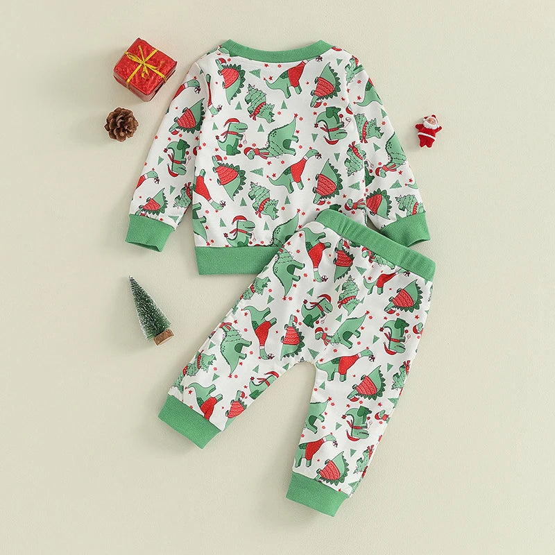 Dinosaur Long Sleeve Sweatshirts Elastic Waist Long Pants Set - Christmas Clothes (0-3 Years)