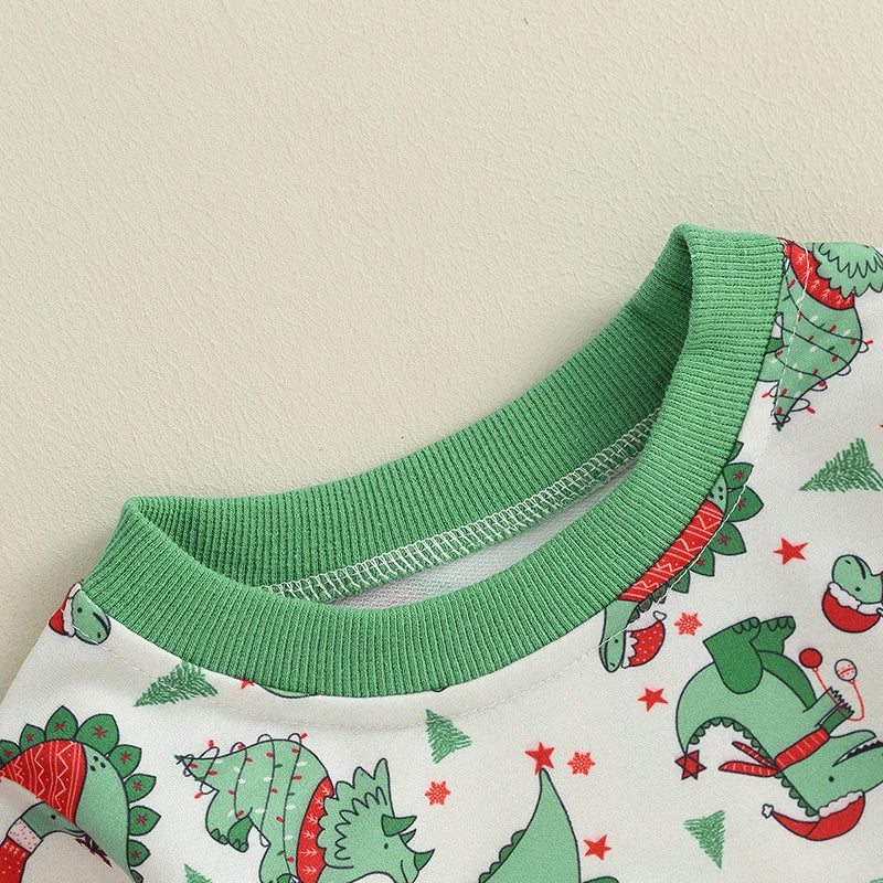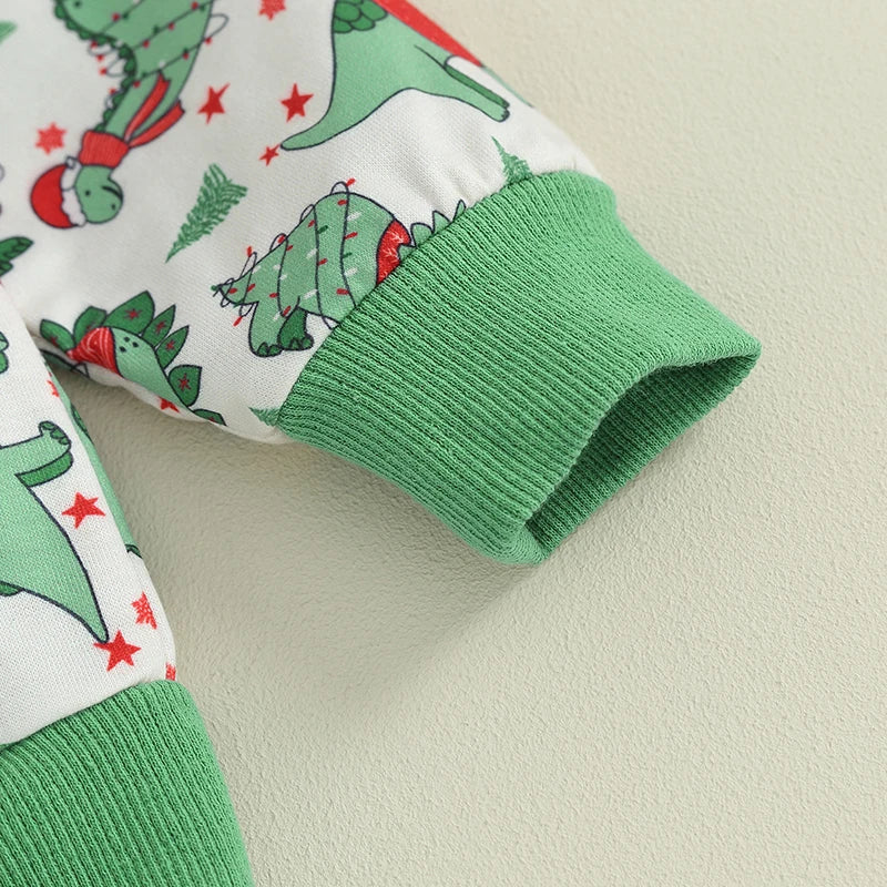 Dress your little adventurer in festive style with our Dinosaur Long Sleeve Sweatshirts Elastic Waist Long Pants Set, perfect for toddler boys aged 0 to 3 years. This charming ensemble adds a playful touch to the holiday season with its dinosaur-themed design. Crafted from soft and cozy materials, it ensures comfort and warmth for your little one during Christmas festivities.