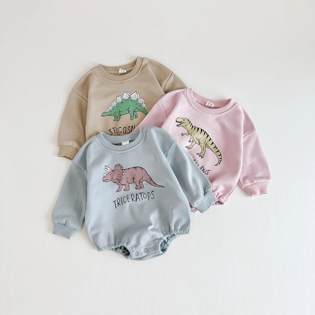 Dinosaur Print Baby Sweatshirt Romper - Autumn/Spring Toddler Bodysuits