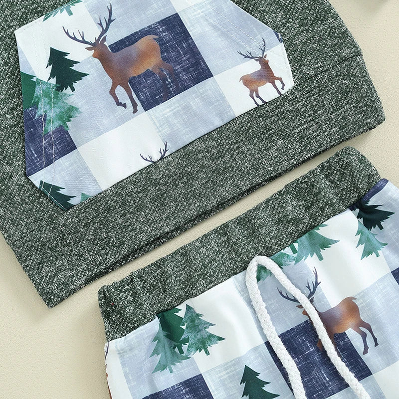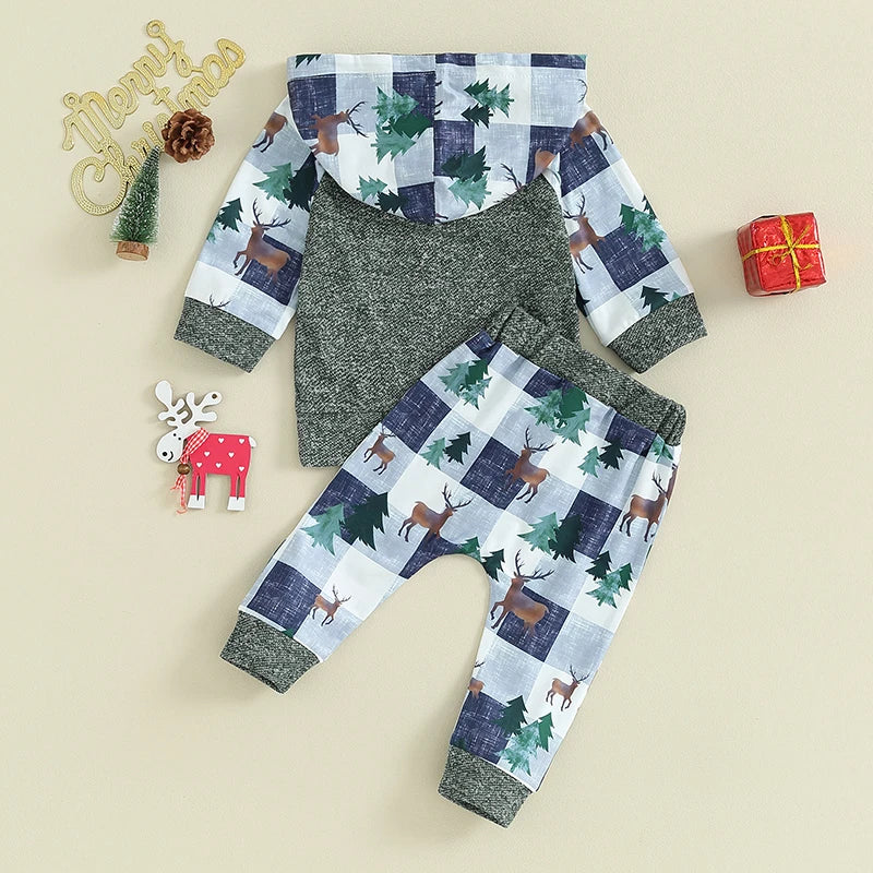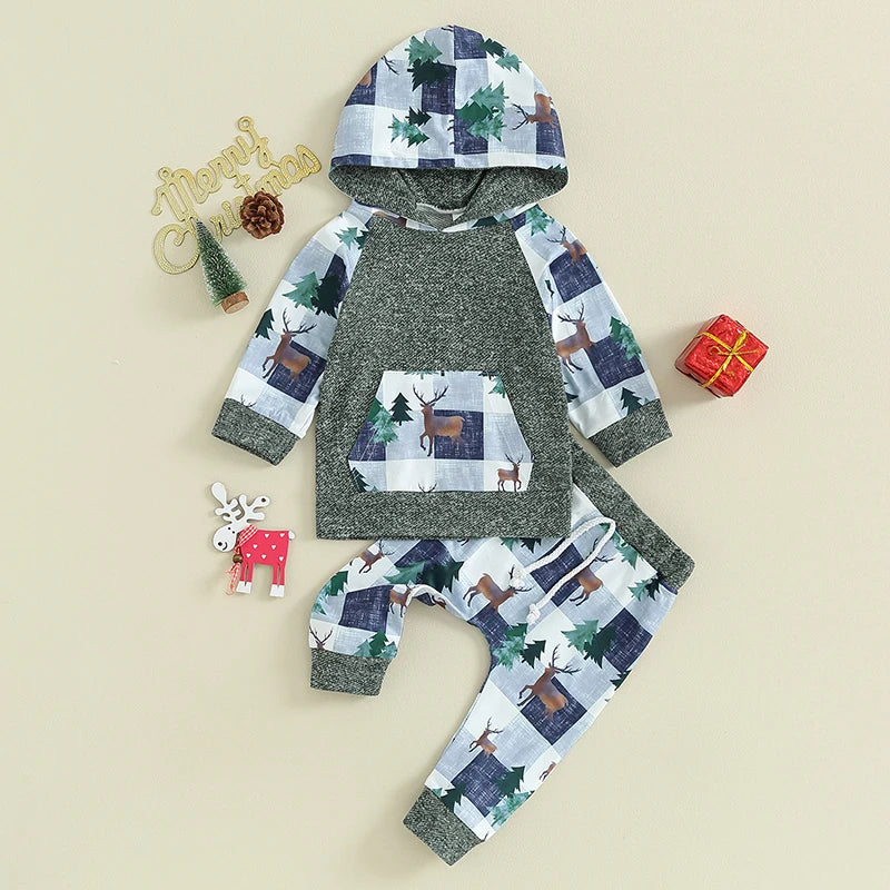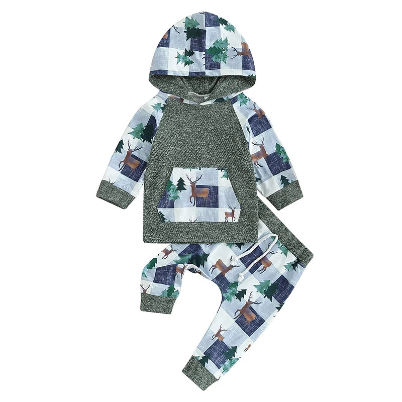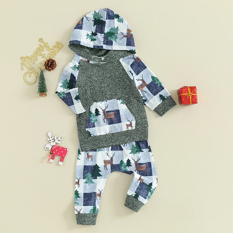 Fall Outfit Baby Boy Hoodies Hoody Sweatshirt Drawstring Pants Christmas Clothes Set (0-3 Years)