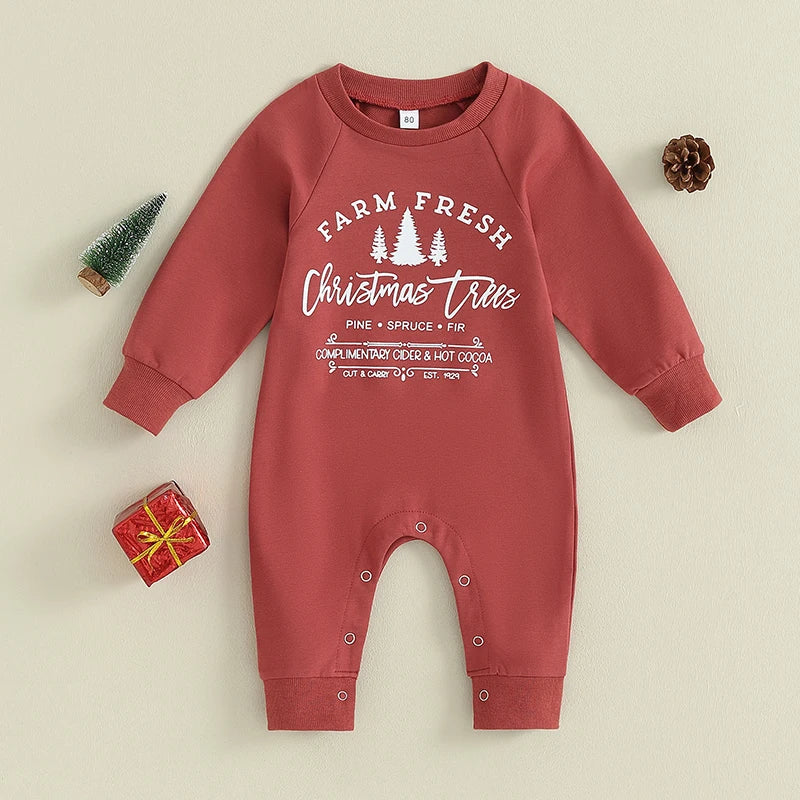 Make fall memorable for your newborn baby boy or girl with our Fall Romper Long Sleeve Letter Printed Crew Neck Jumpsuit in red and green. Whether you're taking family photos or enjoying autumn outings, this romper is sure to keep your little one cozy and stylish.