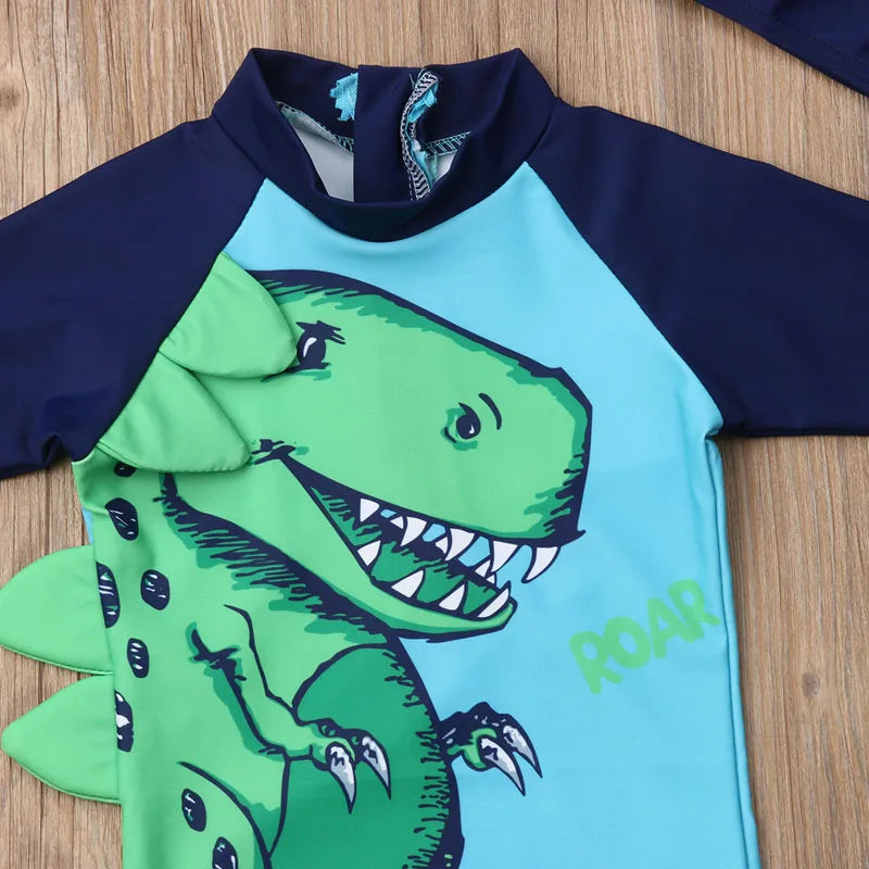 Whether he's splashing in the waves or lounging in the sand, your little guy will stay cute and protected in this fashionable swimwear ensemble. Don't let him miss out on the fun – grab this must-have bathing suit set today and get ready for endless hours of sun-soaked adventures!