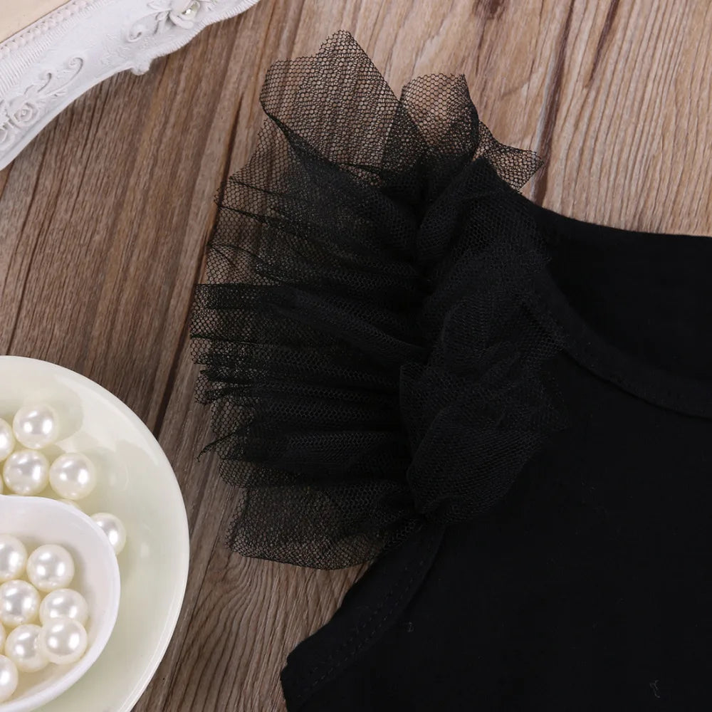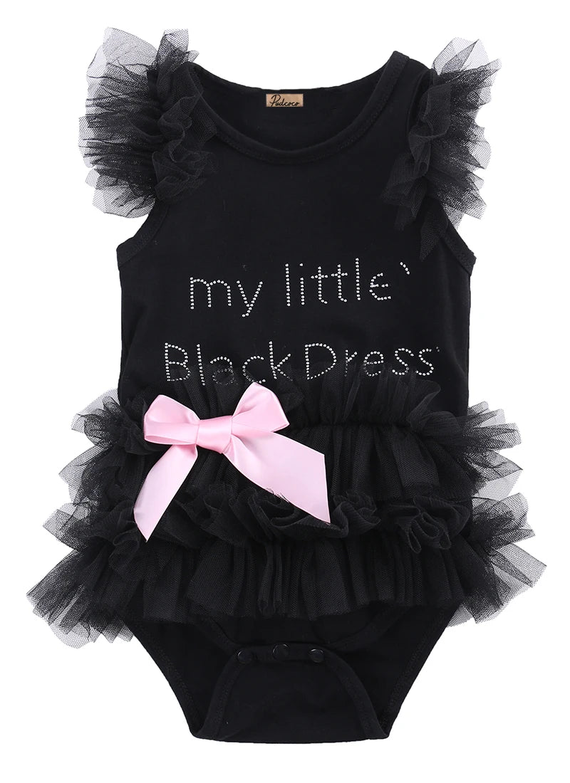 Fashion Embroidered Lace My Little Black Dress Letter Baby Girls Bodysuit
