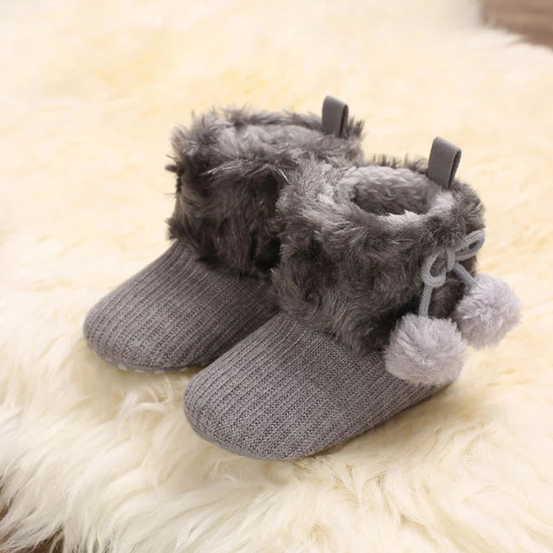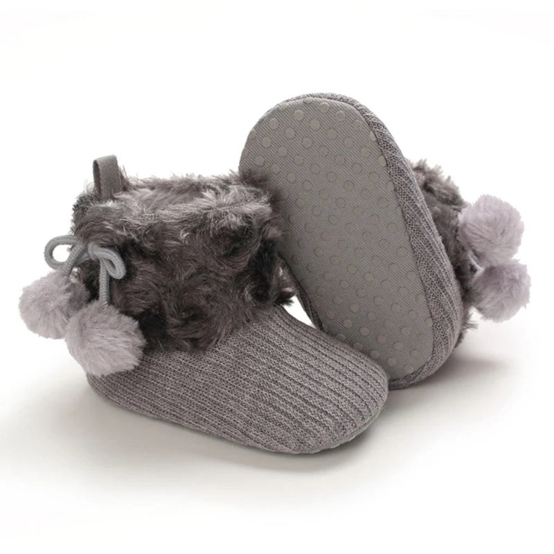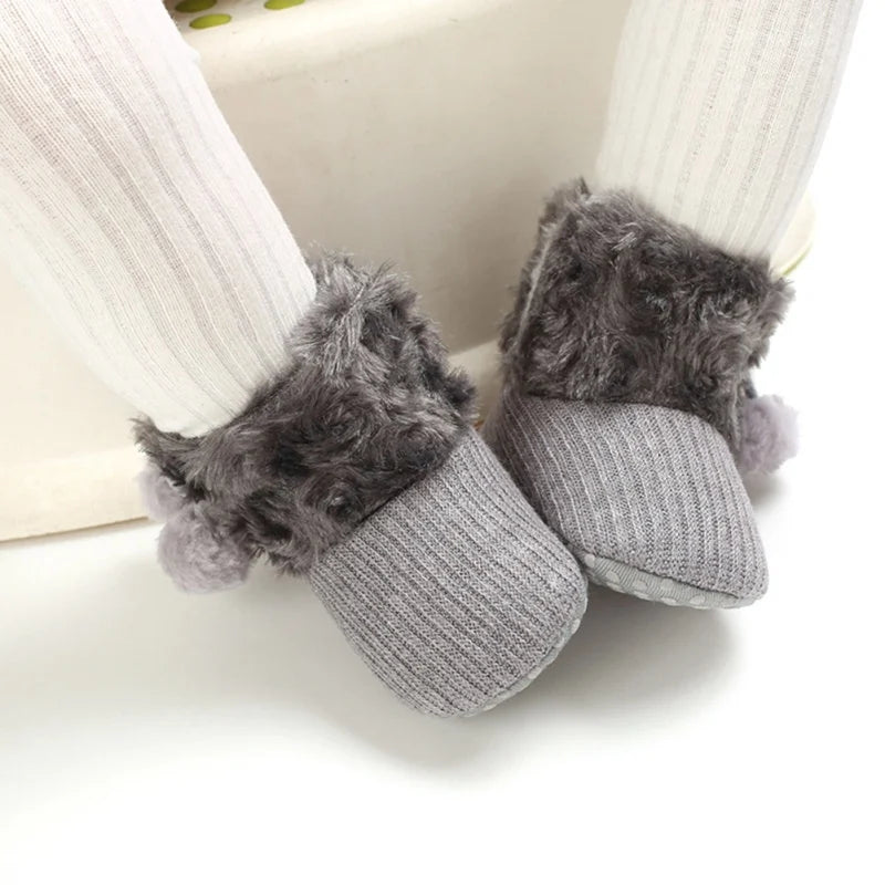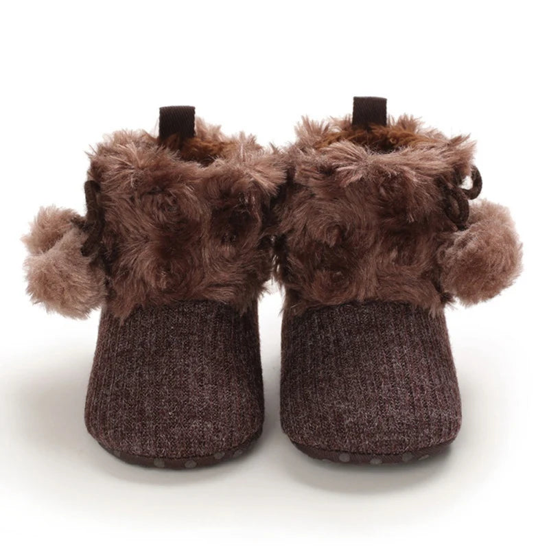 Fashionable Fuzzy Ball Winter Boots for Newborns