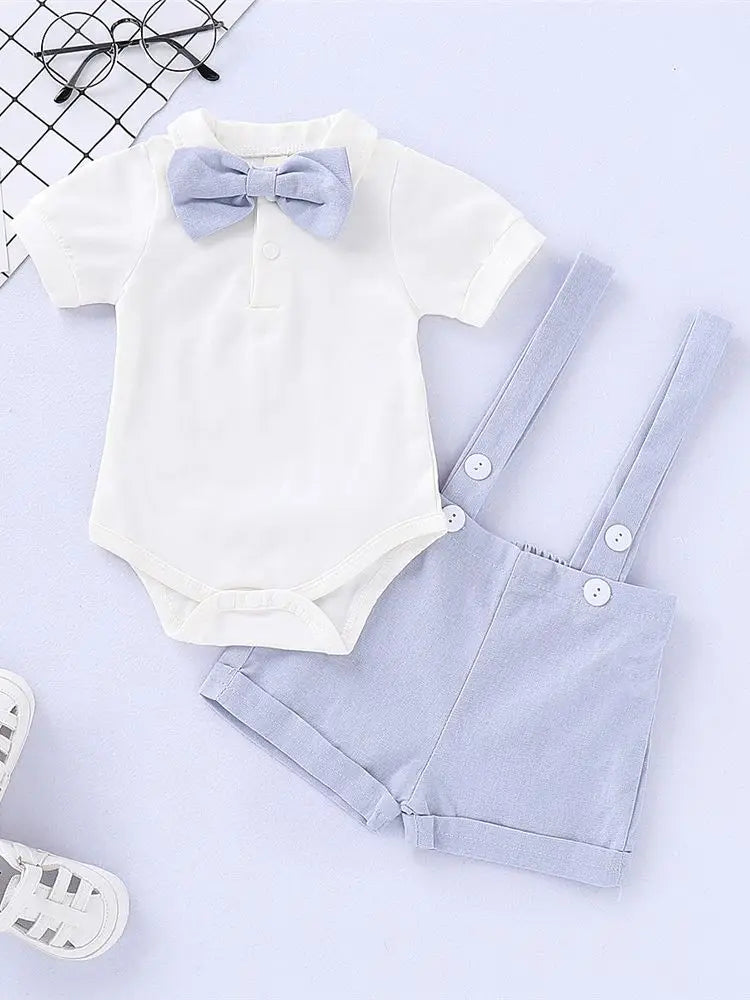 Formal Suit Gentleman Romper + Suspenders Shorts 2PCS Set
