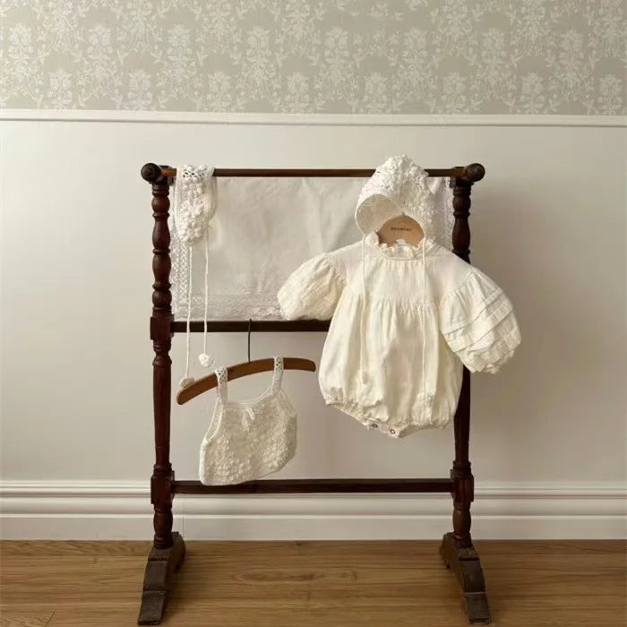 Elevate your baby's spring wardrobe with this practical and adorable lace-up collar jumpsuit, designed for both fashion and comfort.