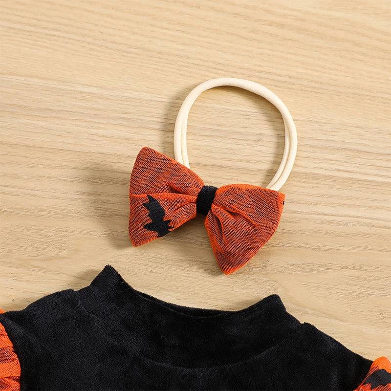 Make Halloween extra special for your infant with our Long Puff Sleeve Print Bodysuit Dress and Headband set. Let her embrace the spirit of the season in style and comfort, creating cherished memories that you'll treasure for years to come.