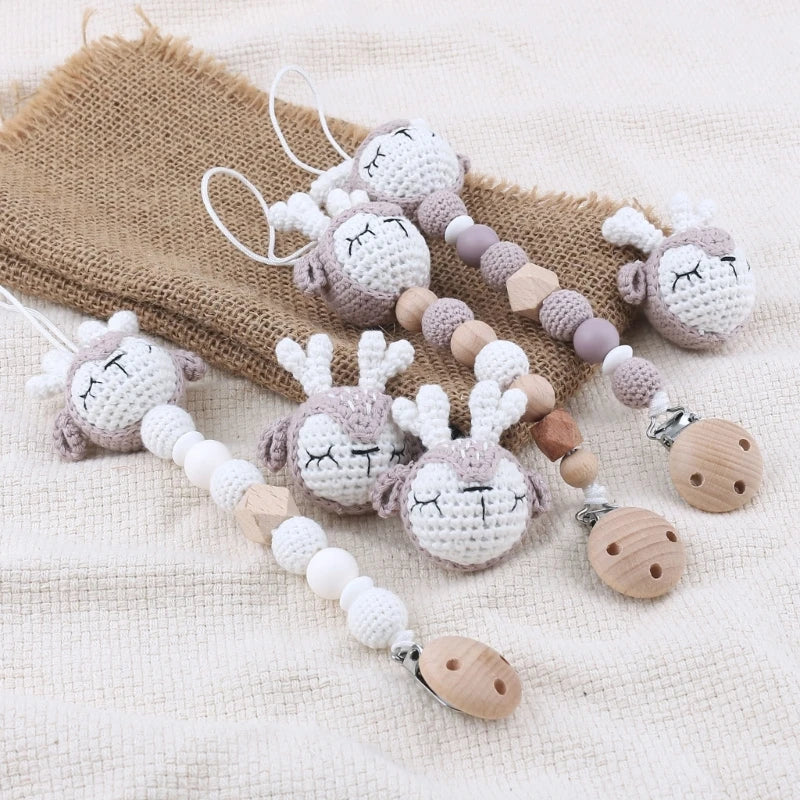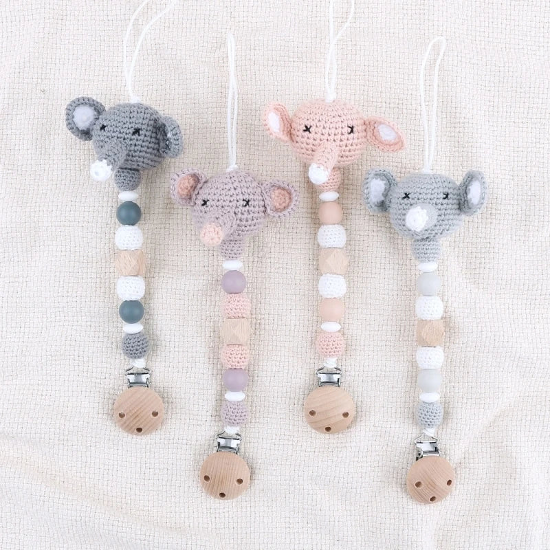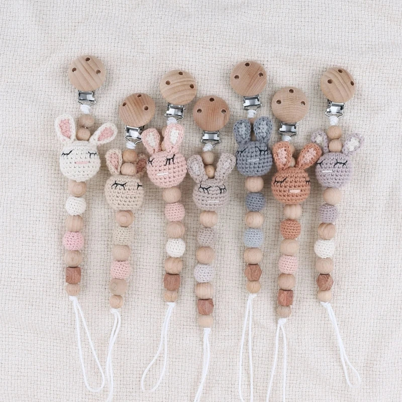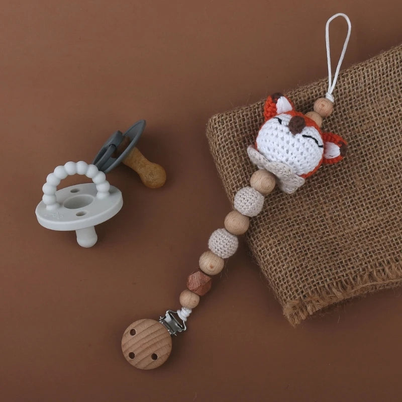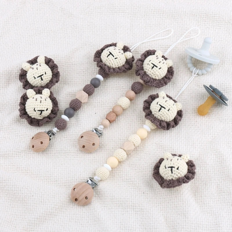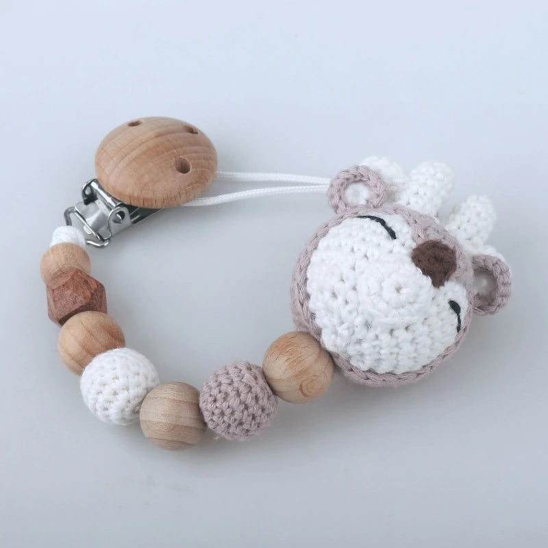 Handmade Crochet Baby Pacifier Clip - Cartoon Animal Knitted Beads Soother Chain