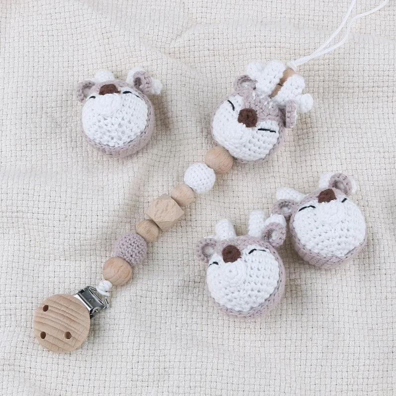 Upgrade your baby's accessories with our Handmade Woolen Crochet Baby Pacifier Clips Accessories and enjoy the cozy comfort and style they bring to your parenting journey. Keep your little one happy and content with these adorable and functional pacifier clips.
