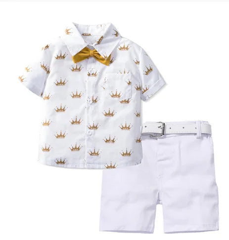 Handsome Kids' Summer Suit - Shirt and Shorts Set with Belt for Boys 1-6 Years