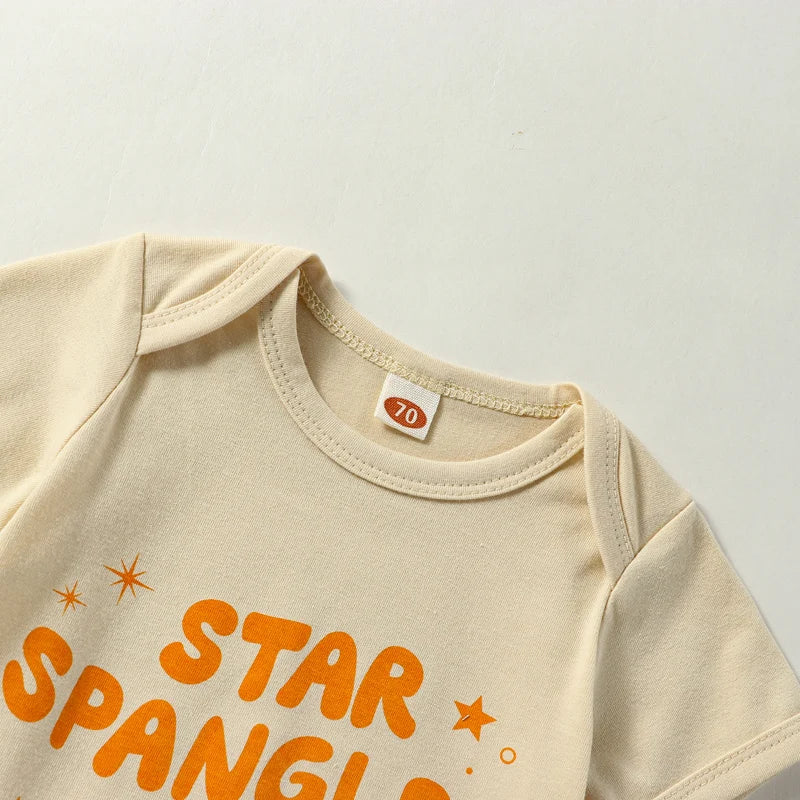 With its versatile design, this set is perfect for capturing precious holiday photos or simply enjoying quality time with family and friends. Whether it's your baby's first Independence Day or a cherished tradition, make it memorable with our Independence Day Baby Girls Letter Print Jumpsuit Set. Order now and dress your little one in patriotic charm!