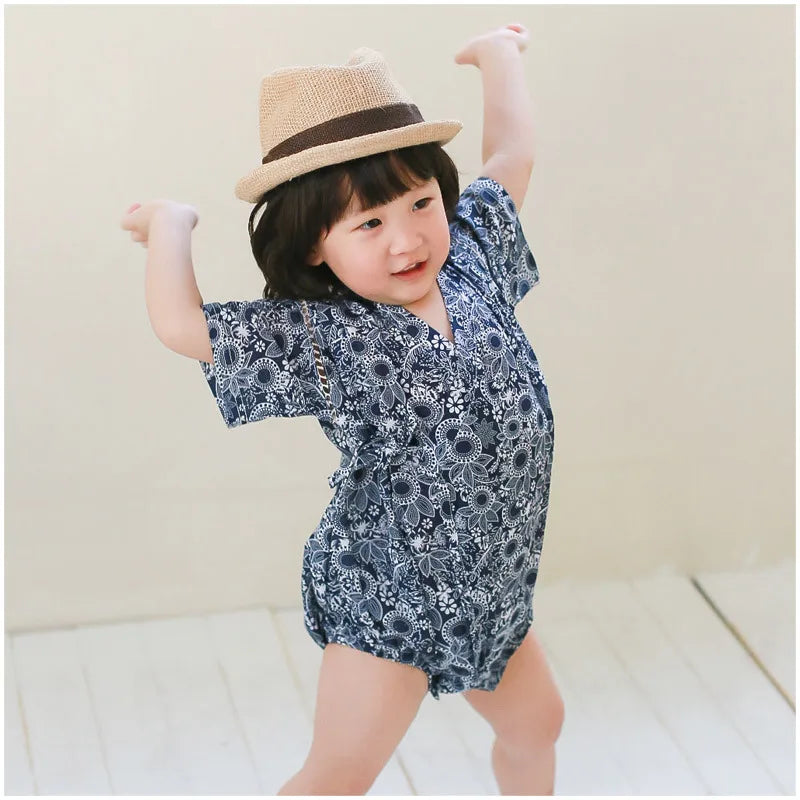 Japanese Style Kimono Baby Romper - Retro Bathrobe Uniform Clothes