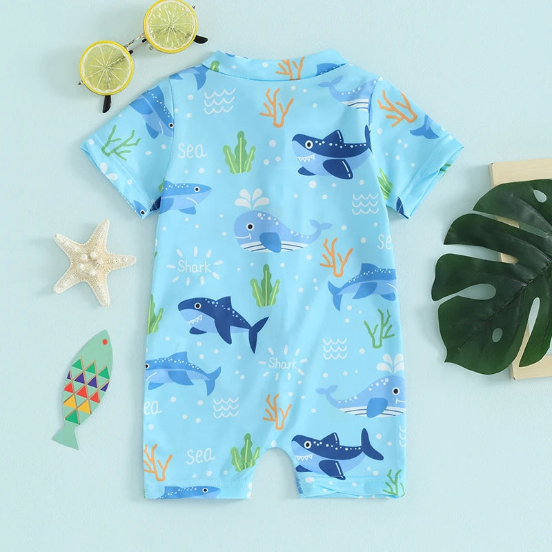Kid Baby Boy Rash Guard Swimsuit with Cute Print and Zip Front